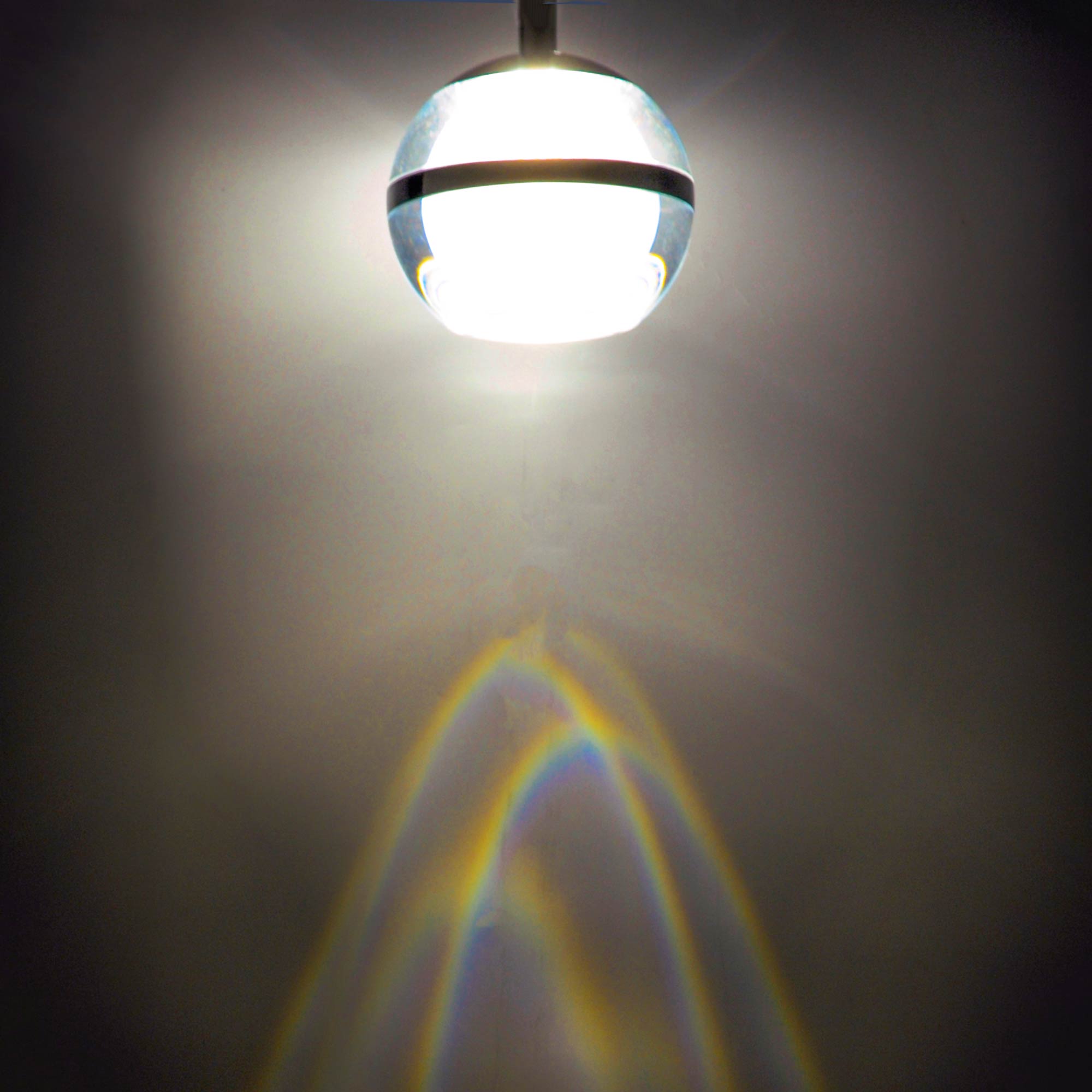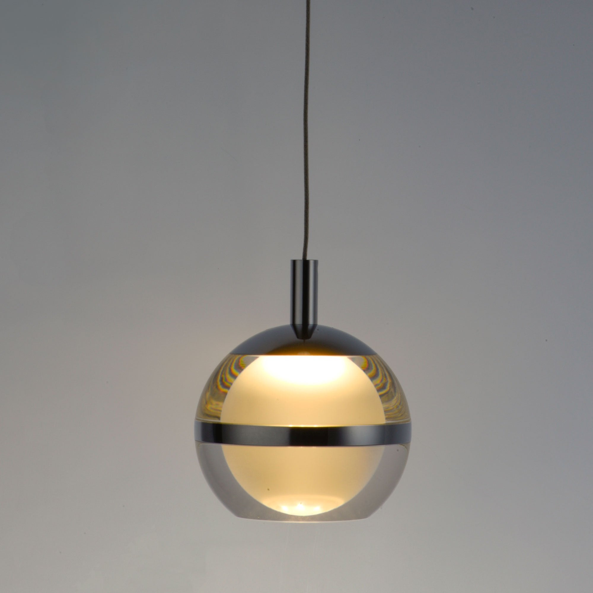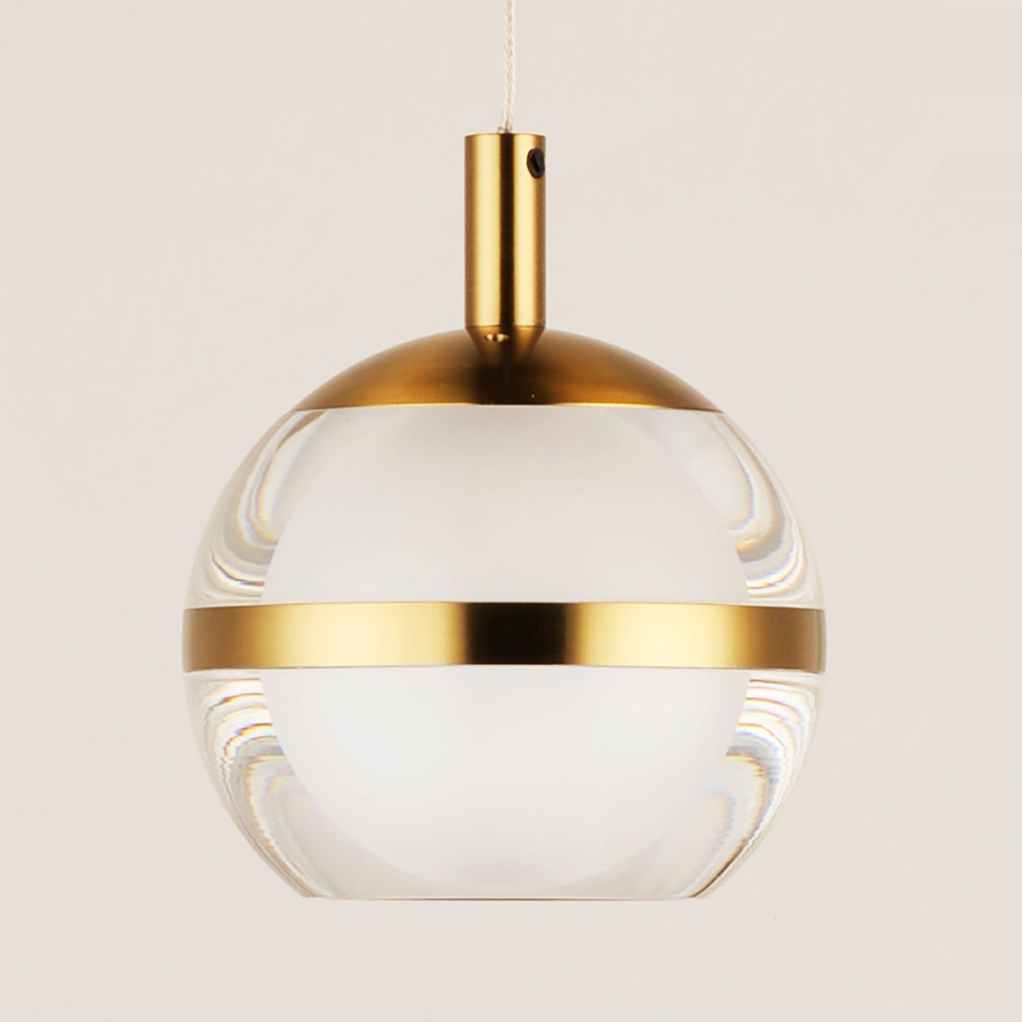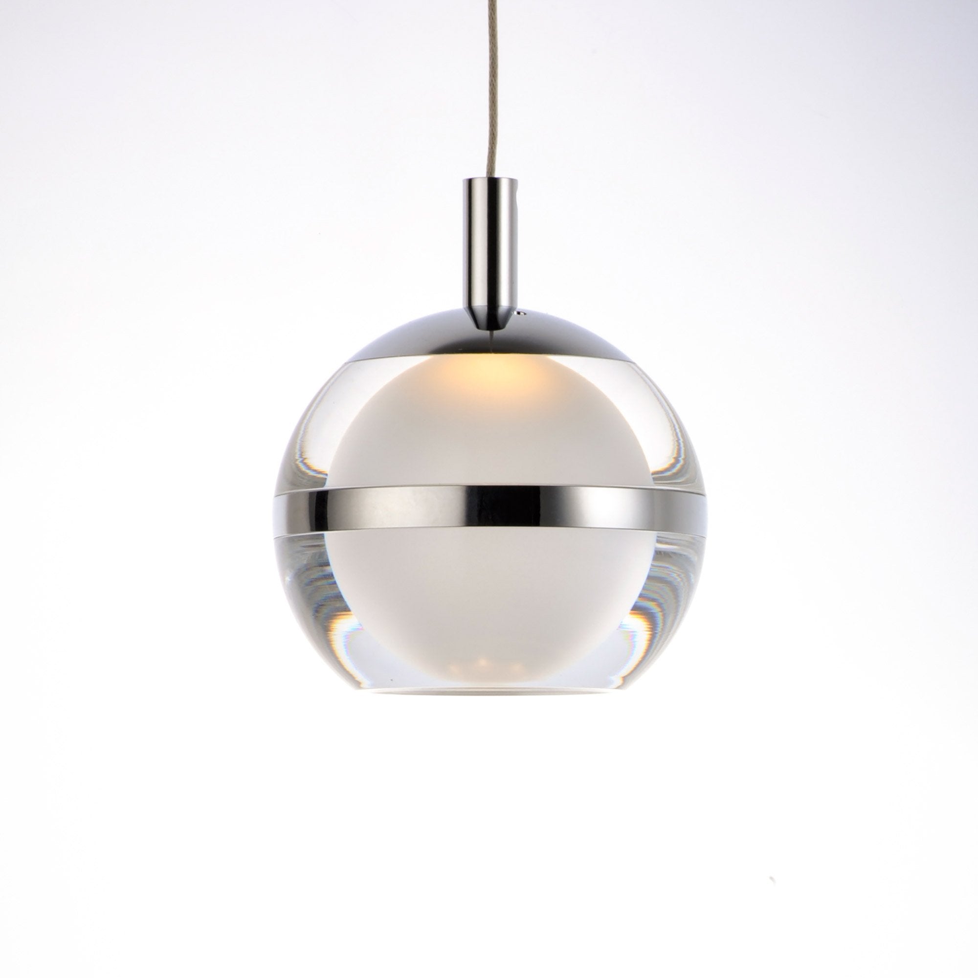 Orbs of crystal Clear acrylic are trimmed with a metal band and frosted inside for excellent light diffusion. The bottom is dimpled for a unique optical effect.