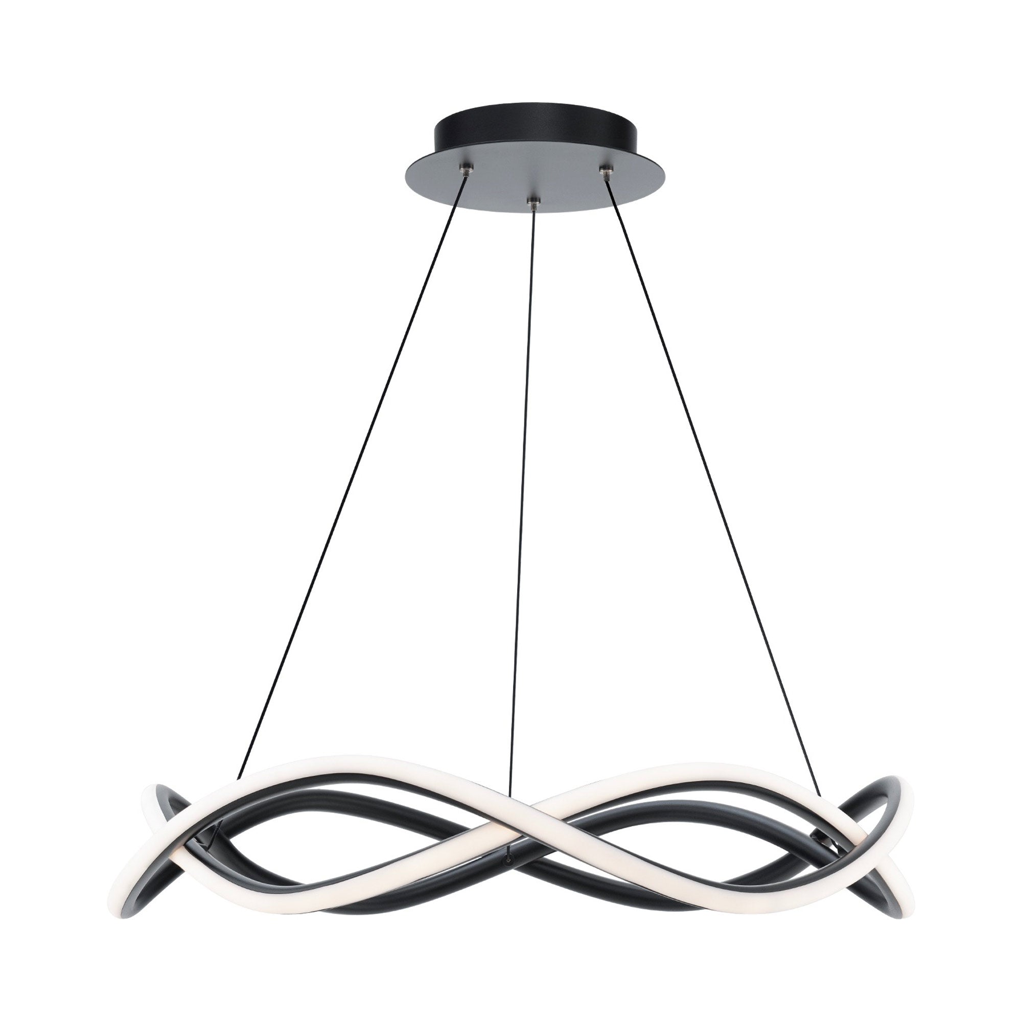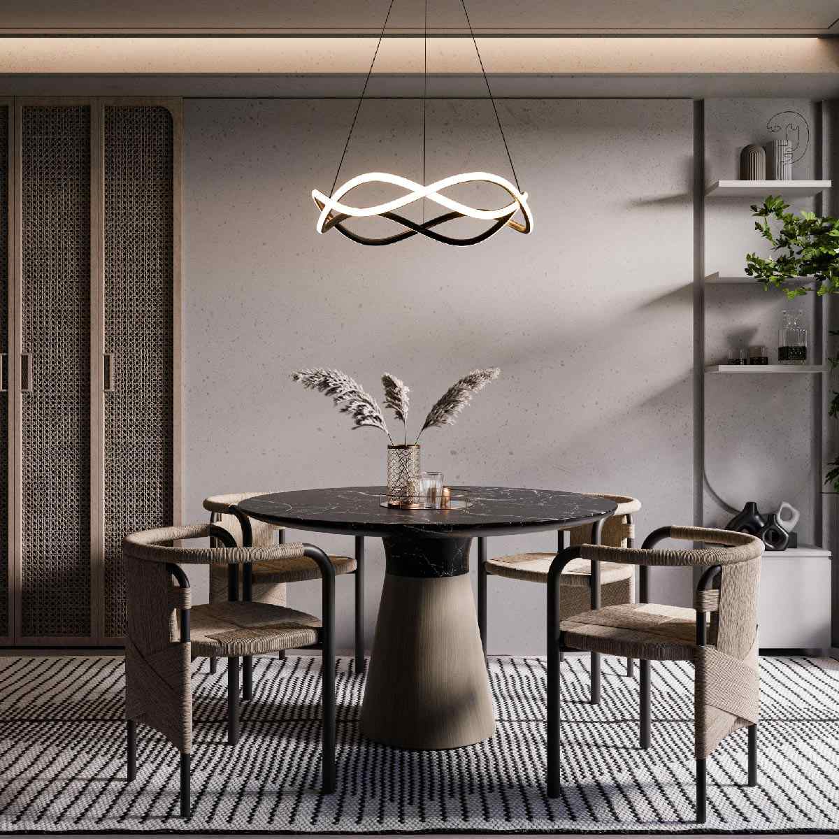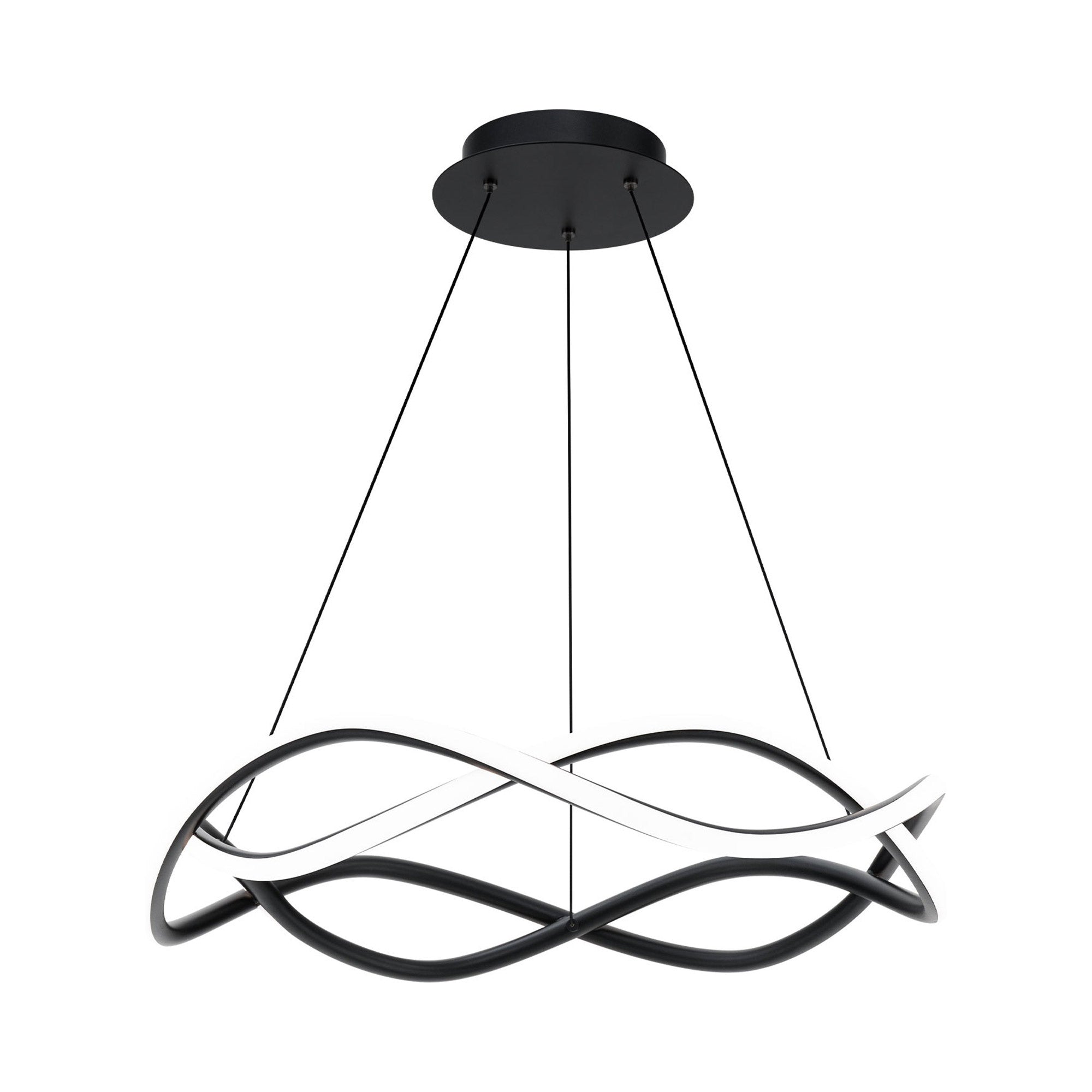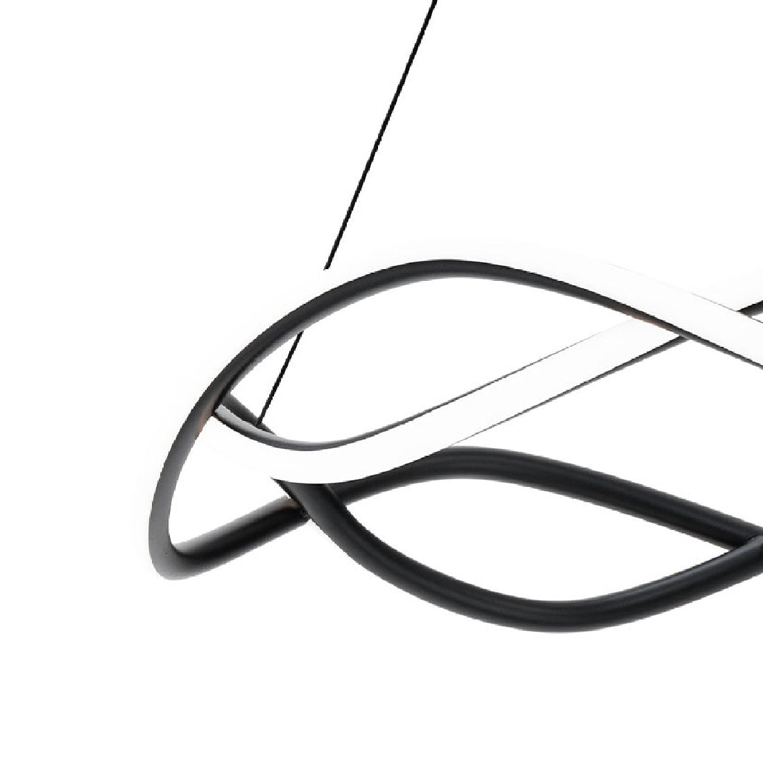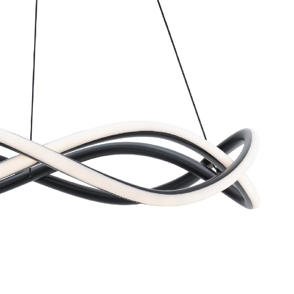 An intersection of waves bring soothing style to the minimalist allure of the Swerve LED Chandelier from dweLED. An elegant choice over a dining table or entry, the floating design is light and airy, with graceful energy and a rich, refined look and feel in a contemporary space.