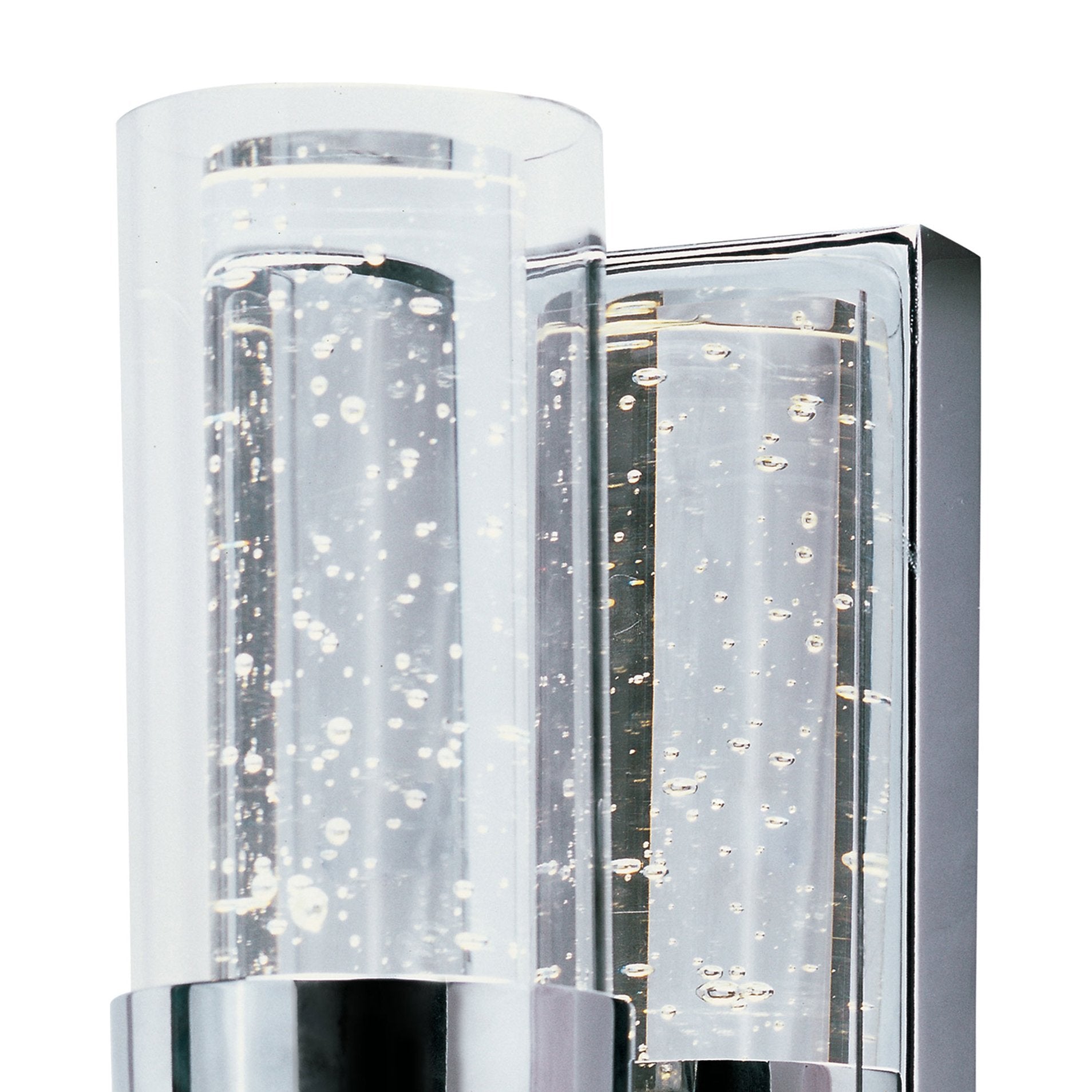 Champagne-like bubbles bring forth a classy flair to the Sync LED Bath Wall Light from Maxim Lighting, while offering a gleaming metallic frame and downcast light for table and vanity surfaces.
