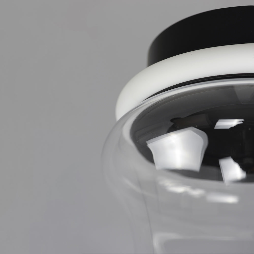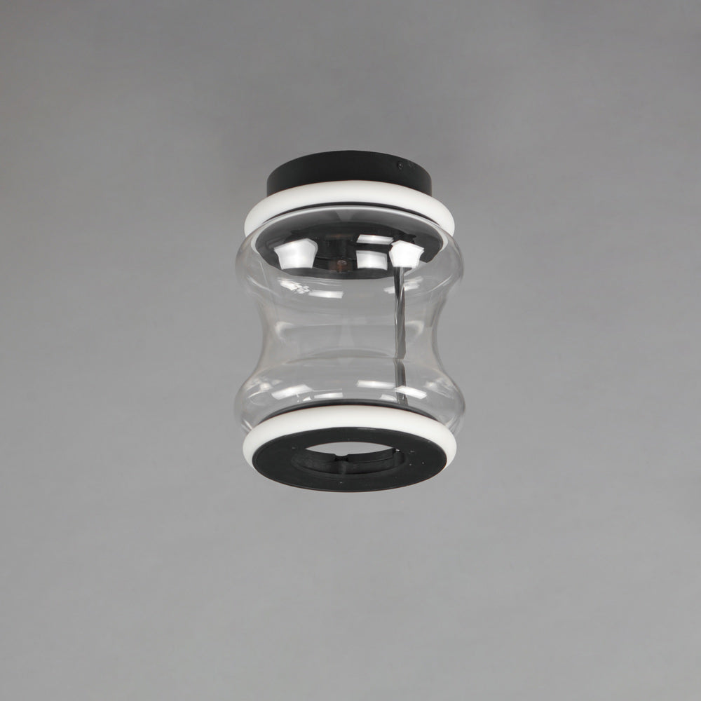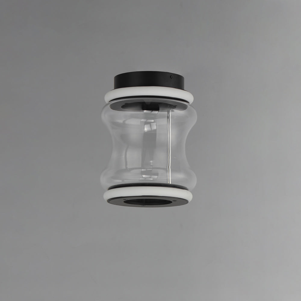 Glowing LED rings sandwich a hand-blown glass hourglass to create the chic silhouette of the Syndicate LED Flush Mount Ceiling Light from ET2 Lighting. The transparent glass adds dimension and depth to the light, while black finish accents create a sense of structure and contrast.