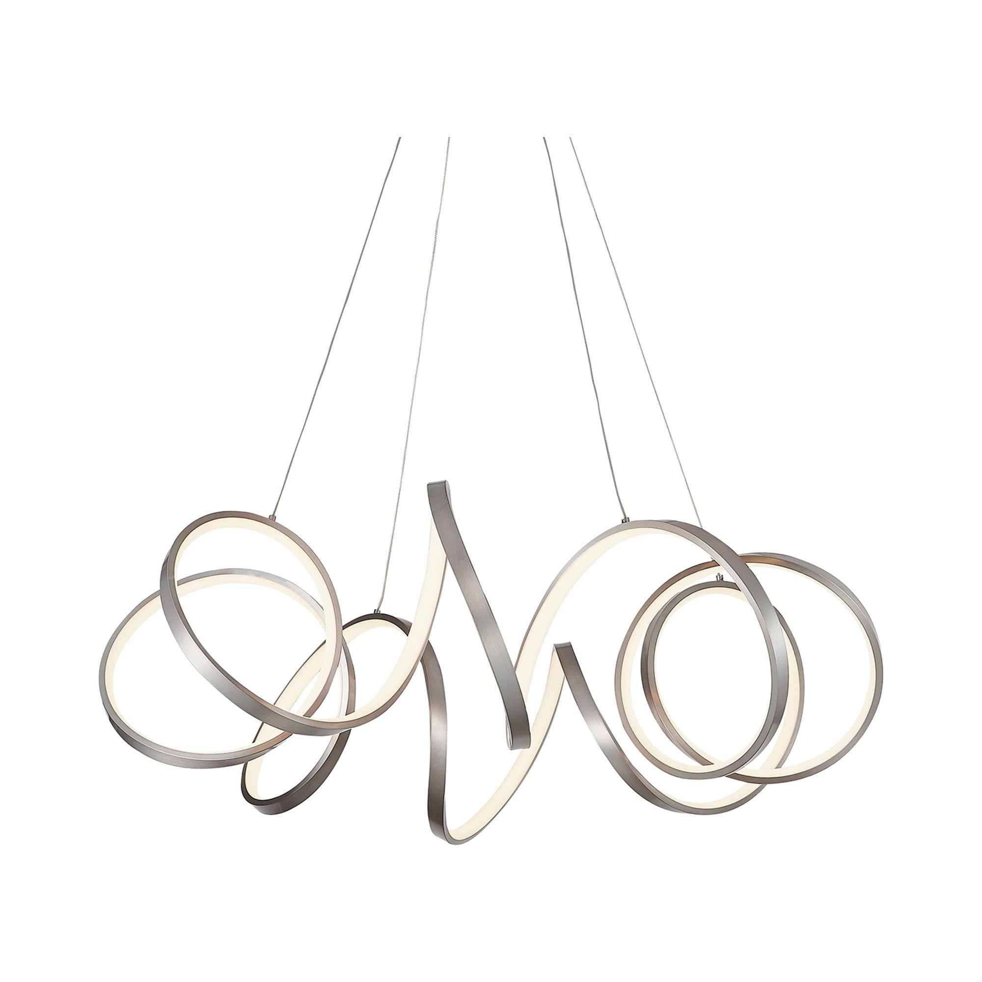 Gallery inspired artisanal style offers a ribbon silhouette to the Synergy LED Pendant Light from Kuzco Lighting, adding a flair and energy-efficient lighting in a contemporary space. Dazzle a modern dining or living space with this elegant aluminum pendant with rolled rectangular extrusions sending illumination through a silicon opal lens.