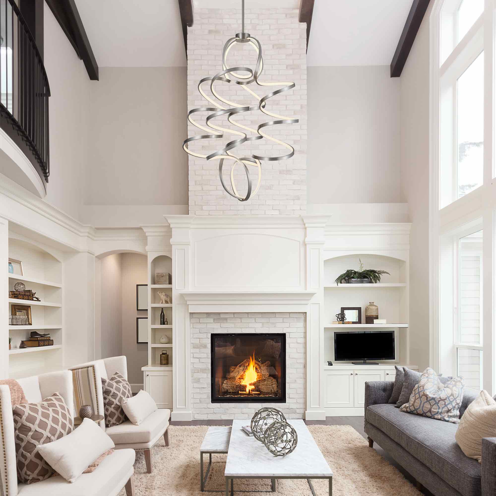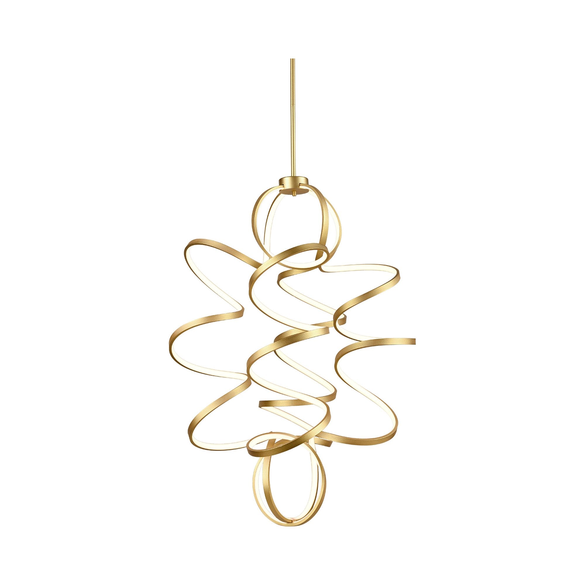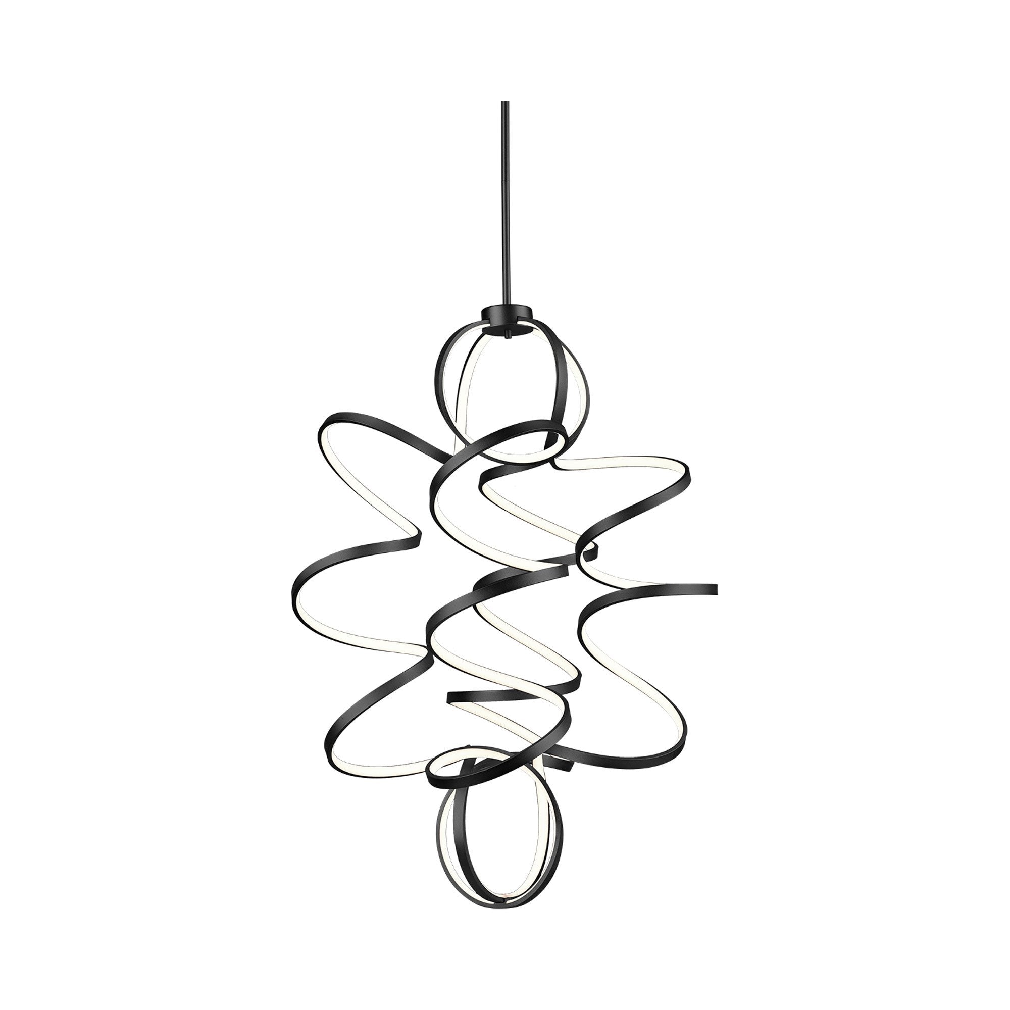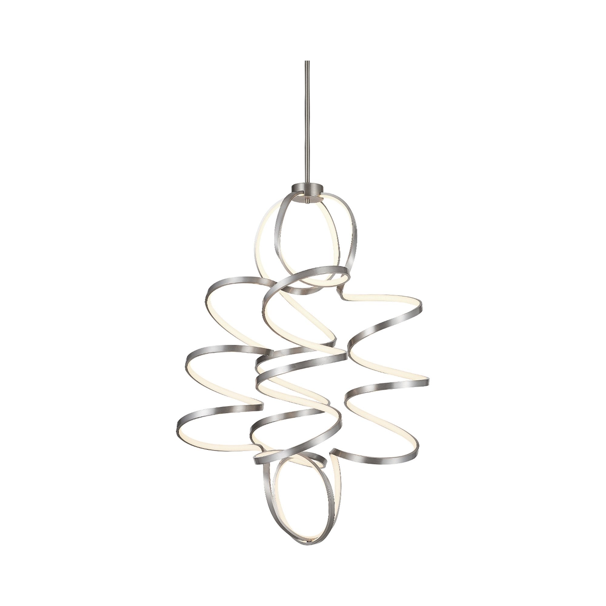 Celebrate artisan style with modern lighting, choosing the Synergy Vertical LED Pendant Light from Kuzco Lighting to illuminate a contemporary living area. Energy-efficient lighting glows through a silicon opal lens banded to a chic ribbon-shaped frame that delivers a touch of elegance in a living room, dining room, or entryway.