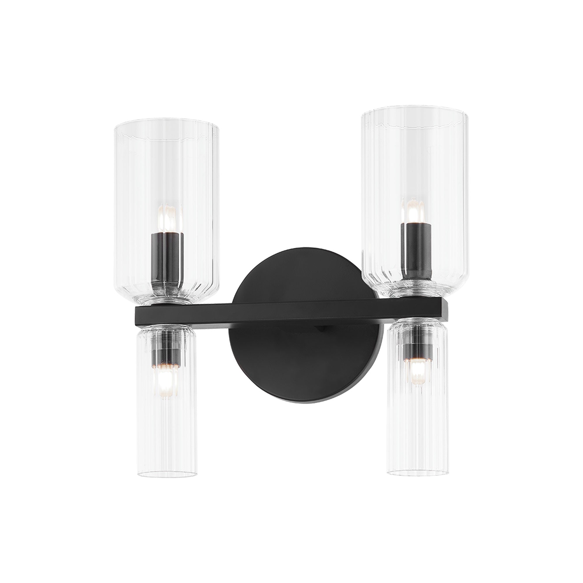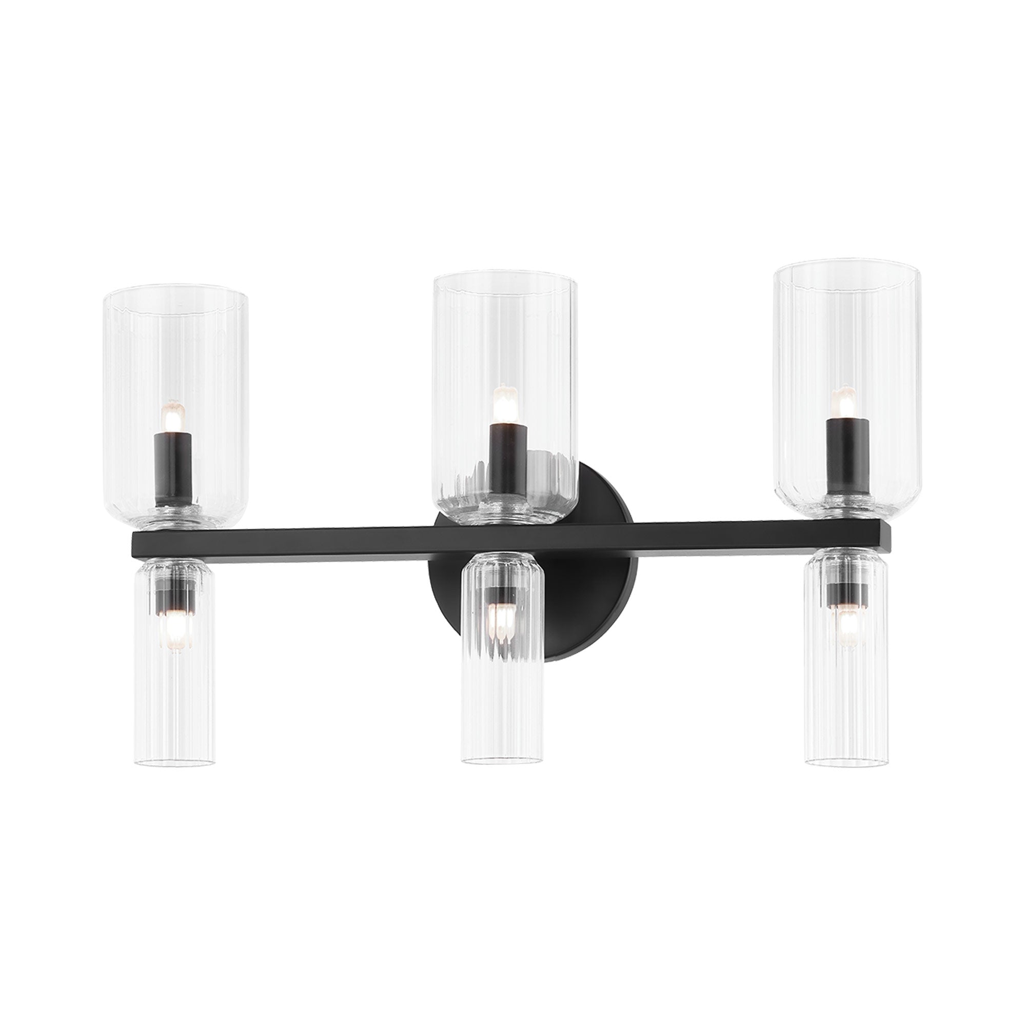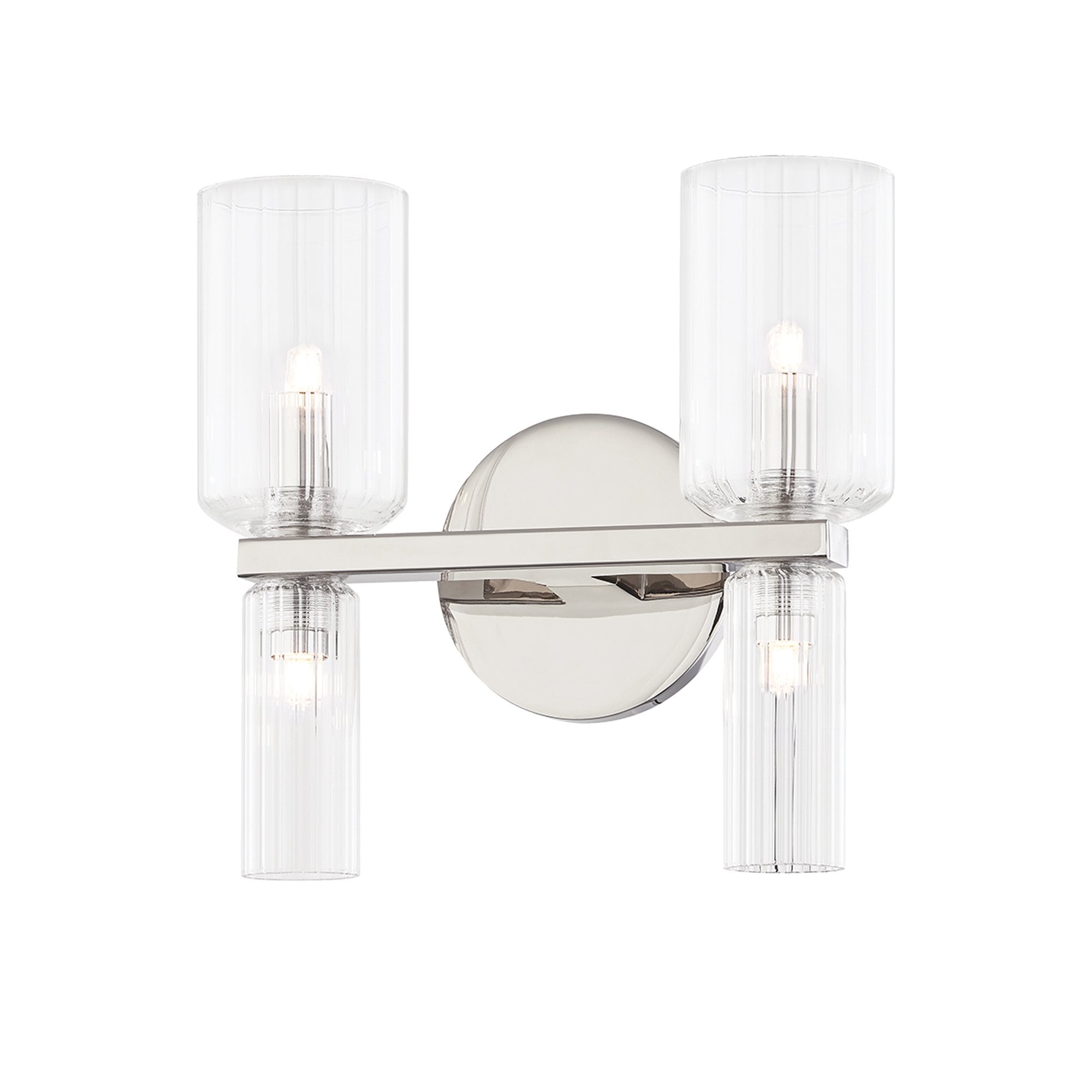 Gleaming glass refined with subtle ribbing highlights a chic, upscale aesthetic that makes a personal statement when the Tabitha Bath Vanity Light from Mitzi infuses sophisticated glam throughout. Delicate yet hardy, its shapely goblet-inspired glass shades sync with metal accents arranged with geometric silhouetting, creating an enticing fixture for modern bath spaces.