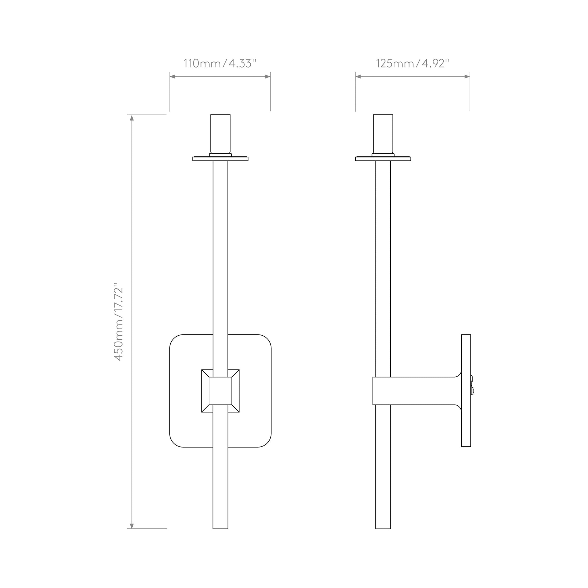 - Grande: 4.33"W X 17.72"H; 4.92" Extension