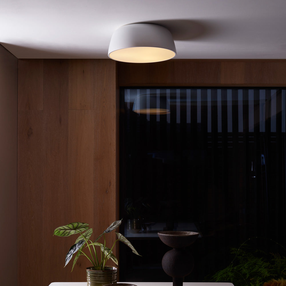 Present a diffused glow with the Taiko Flush Mount Ceiling Light from Astro Lighting. The gently curved edges and translucent shade of this energy-efficient flush mount ceiling light present a softness to the space for an undeniably beautiful minimalist modern aesthetic.