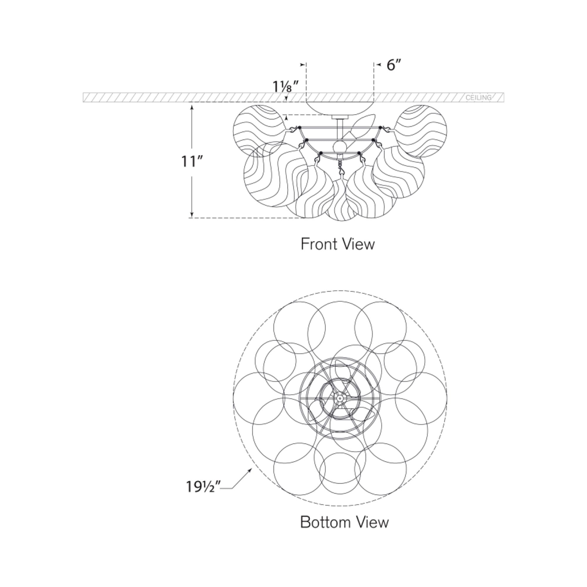Bubbly orbs of swirled glass create whimsical elegance for the Talia Flush Mount Ceiling Light from Visual Comfort Signature. Varying in size, these clear glass orbs create a sense of movement, enlivening living areas and bedrooms with this playful sophistication.