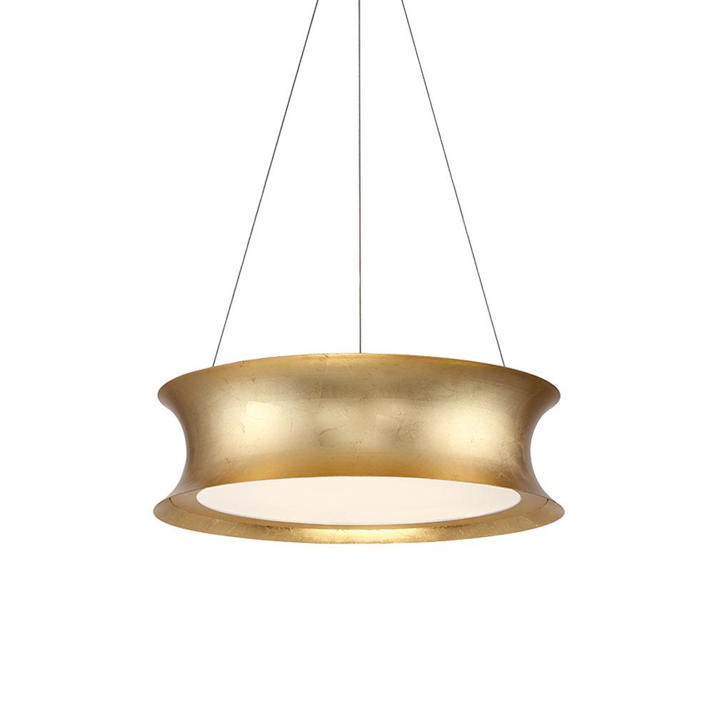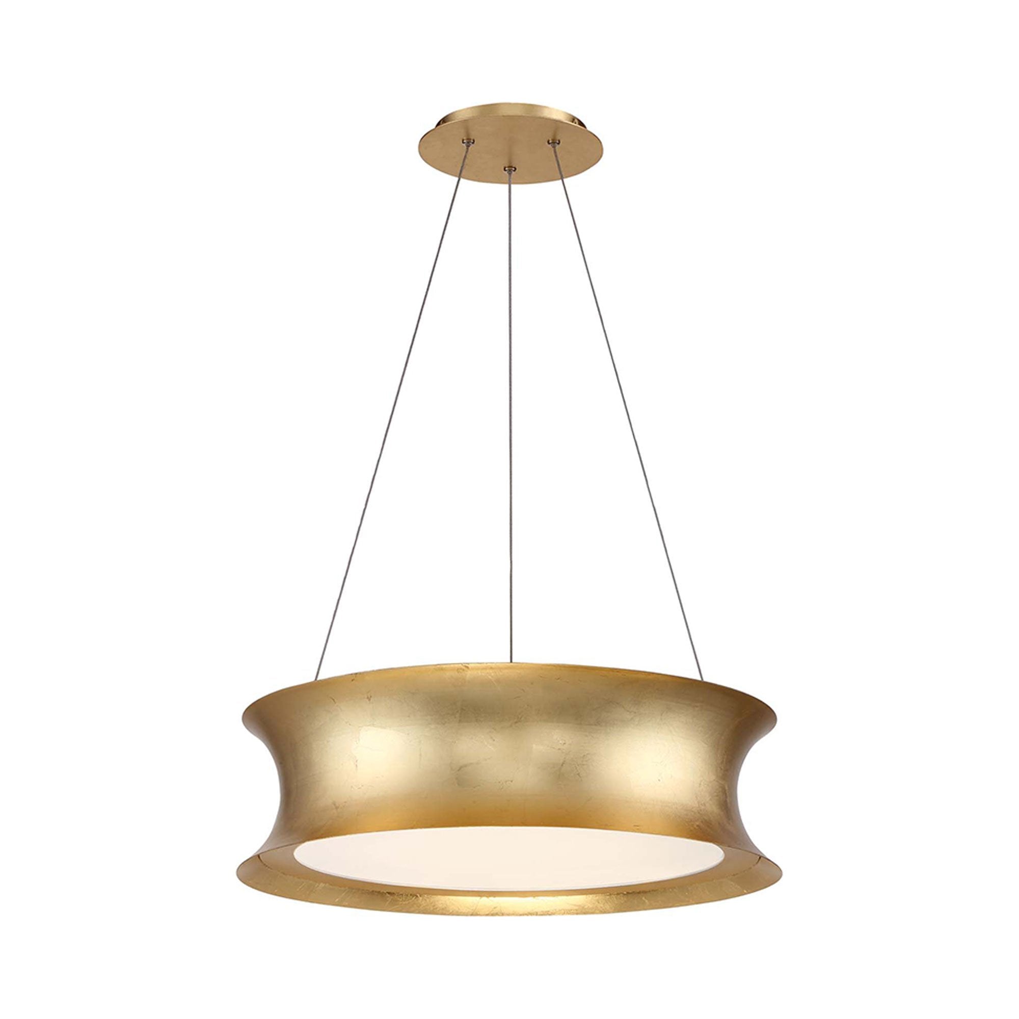 Cinched at the waist, this scintillating drum is hand-finished in gold or silver leaf and then lacquered at the end for a matte look. An opal glass diffuser evenly spreads out the light over your restaurant, hotel lobby, or dining room presentation.