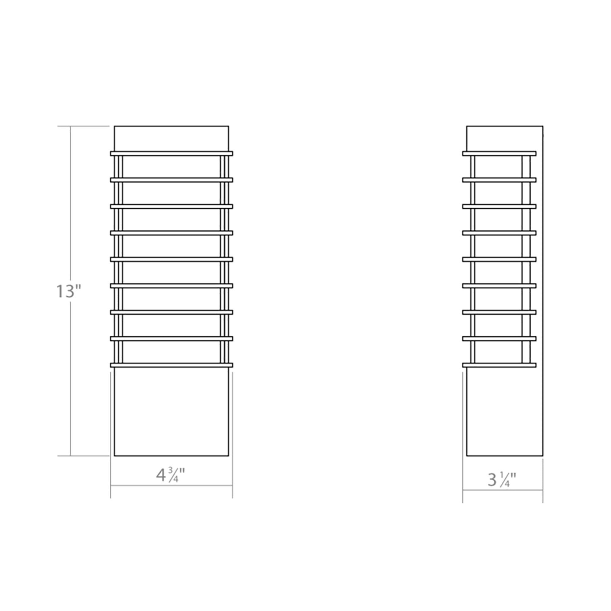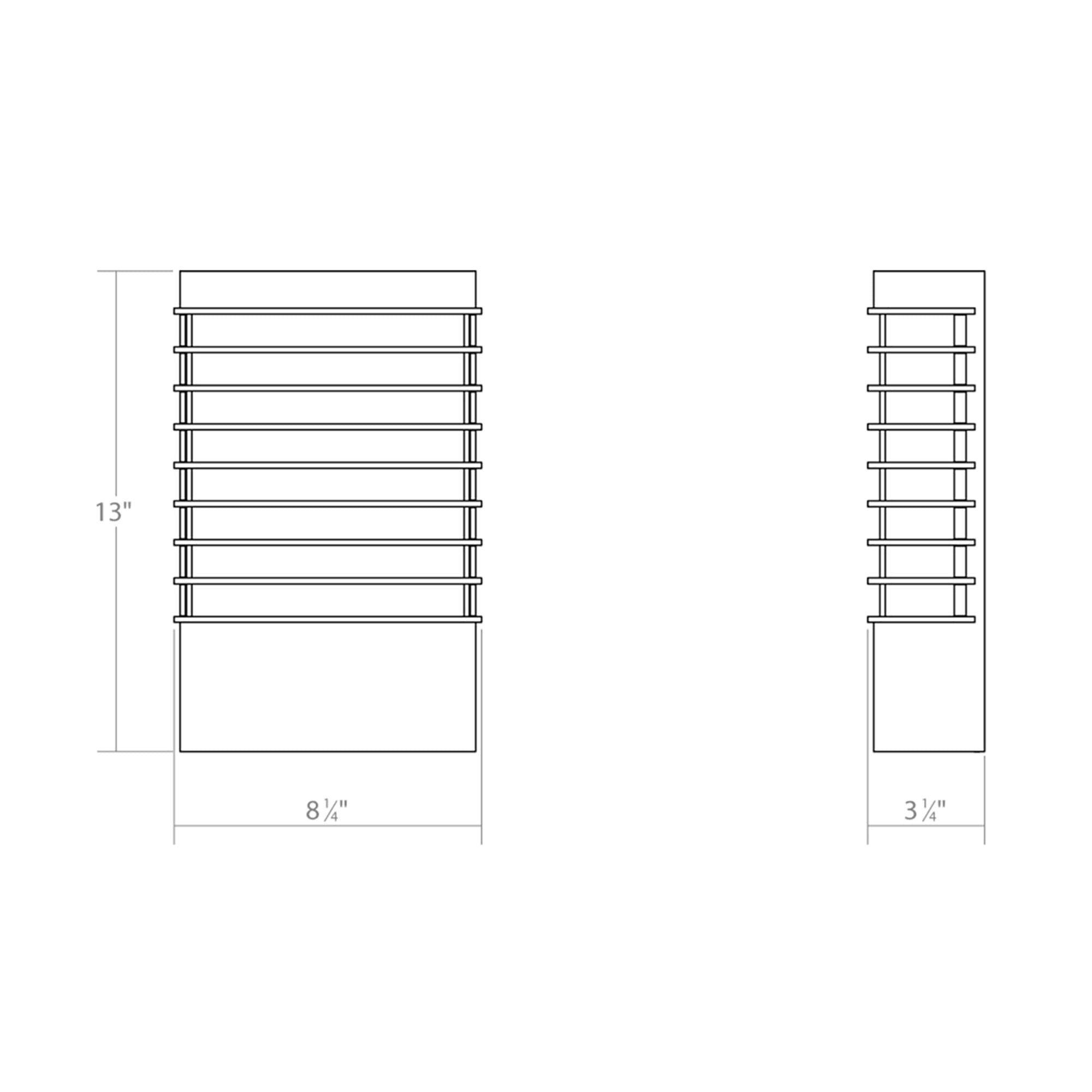 - 13IN Slim: 4.75"W X 13"H; 3.25" Extension