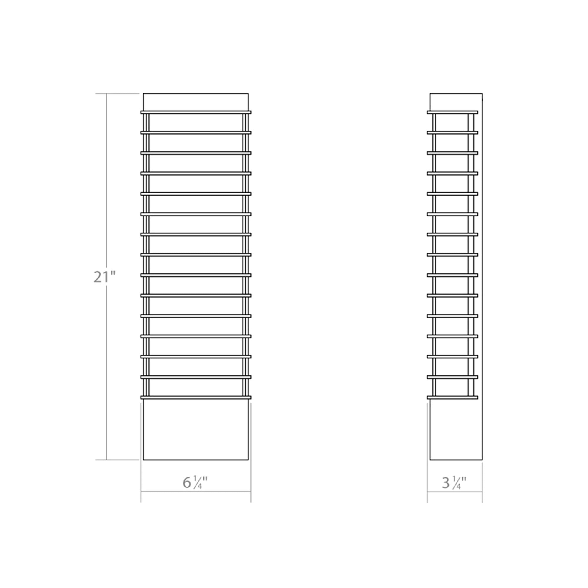 - 21IN Slim: 4.75"W X 21"H; 3.25" Extension