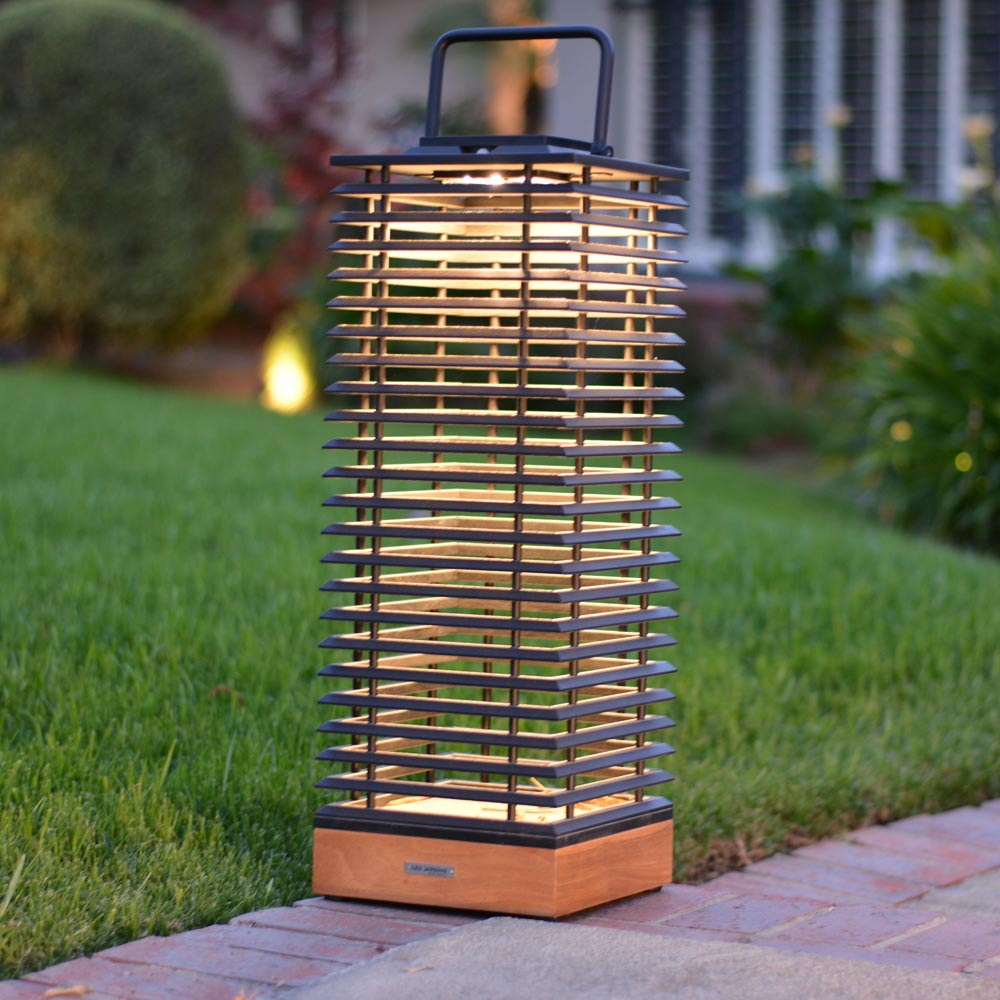 Adapt to a new design era that extends to exterior lighting and add a chic look with functionality to a patio or walkway. The Tekura Outdoor Solar LED Lantern from Les Jardins blends industrial and natural motifs to supply energy-efficient solar lighting in a lantern-inspired teakwood and metal framing. Solar-powered with an efficient battery, this lantern adapts to on-demand mobility and is ideal for outdoor entertaining or a permanent source of soft illumination.
