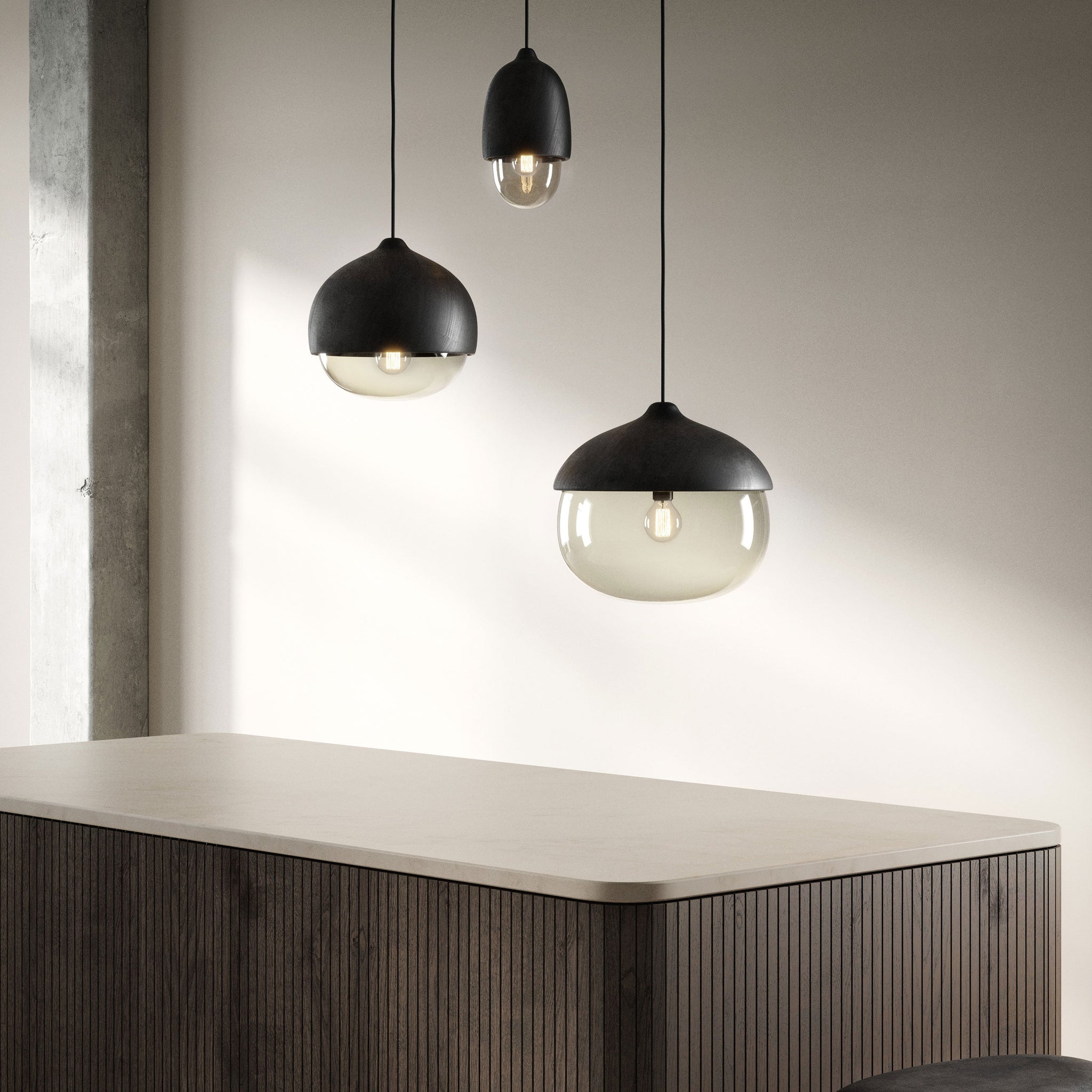 Suffuse your space with light and style when adding the striking Terho Pendant Light from Mater, which boasts sleek curves and a compelling combination of materials and matte finishes. Suspended from a covered cord, the pendant shows off an FSC-certified linden wood cap punctuated beneath with a rounded glass diffuser that emits beautiful illumination over your decor.