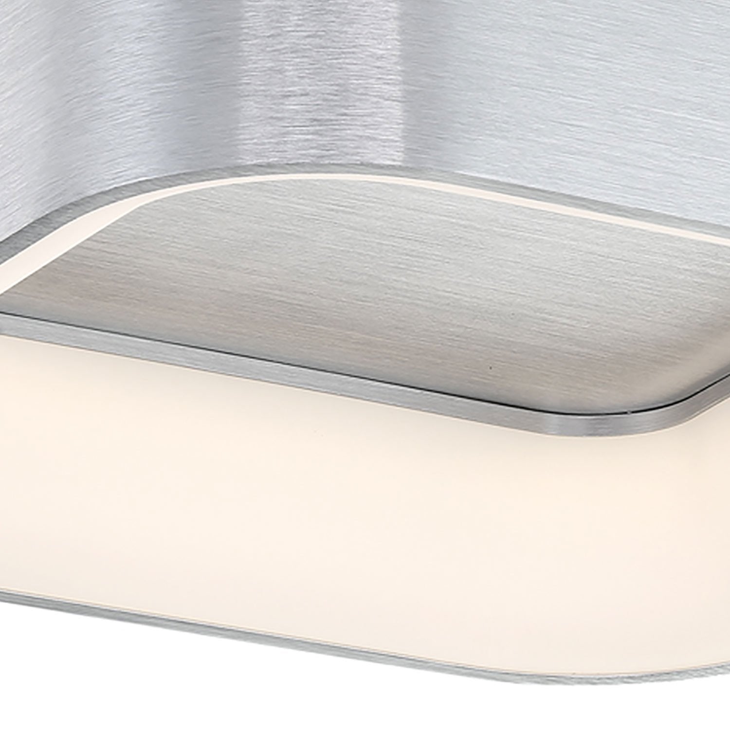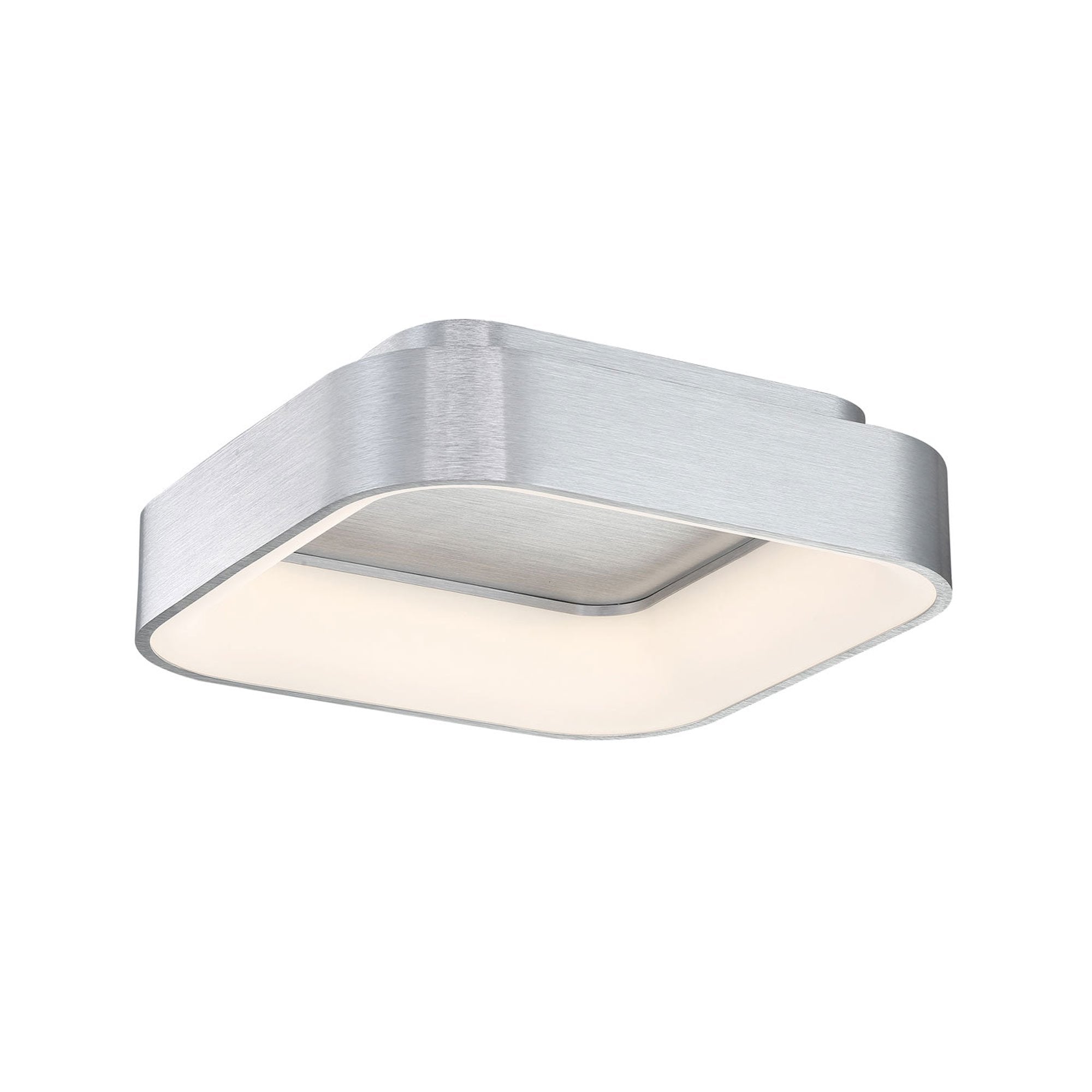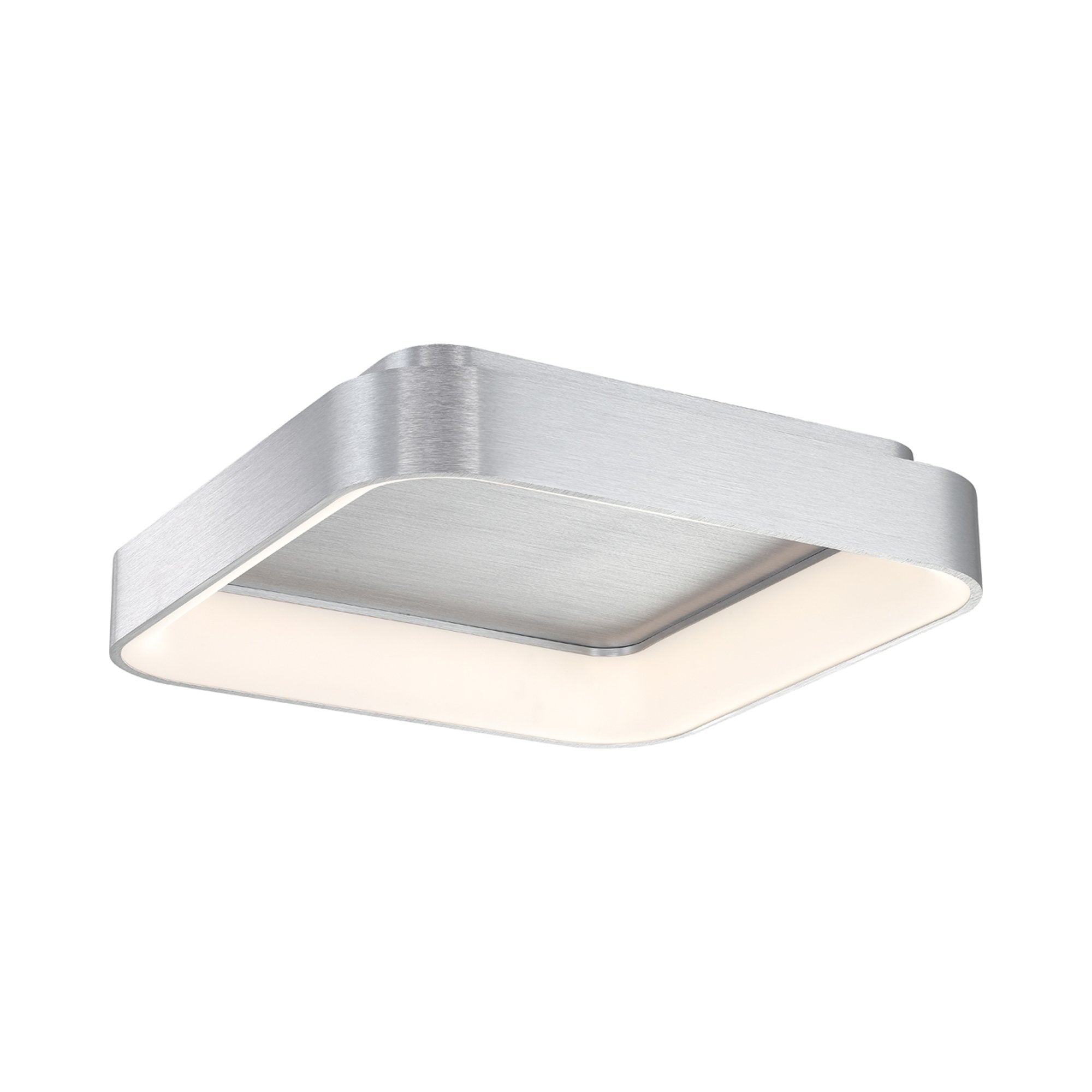 A square frosted diffuser and hidden LED lighting modules create functional style to the Tetris LED Flush Mount Ceiling Light from dweLED, a transitional fixture couched in a tasteful square brushed aluminum finish frame with rounded corners.