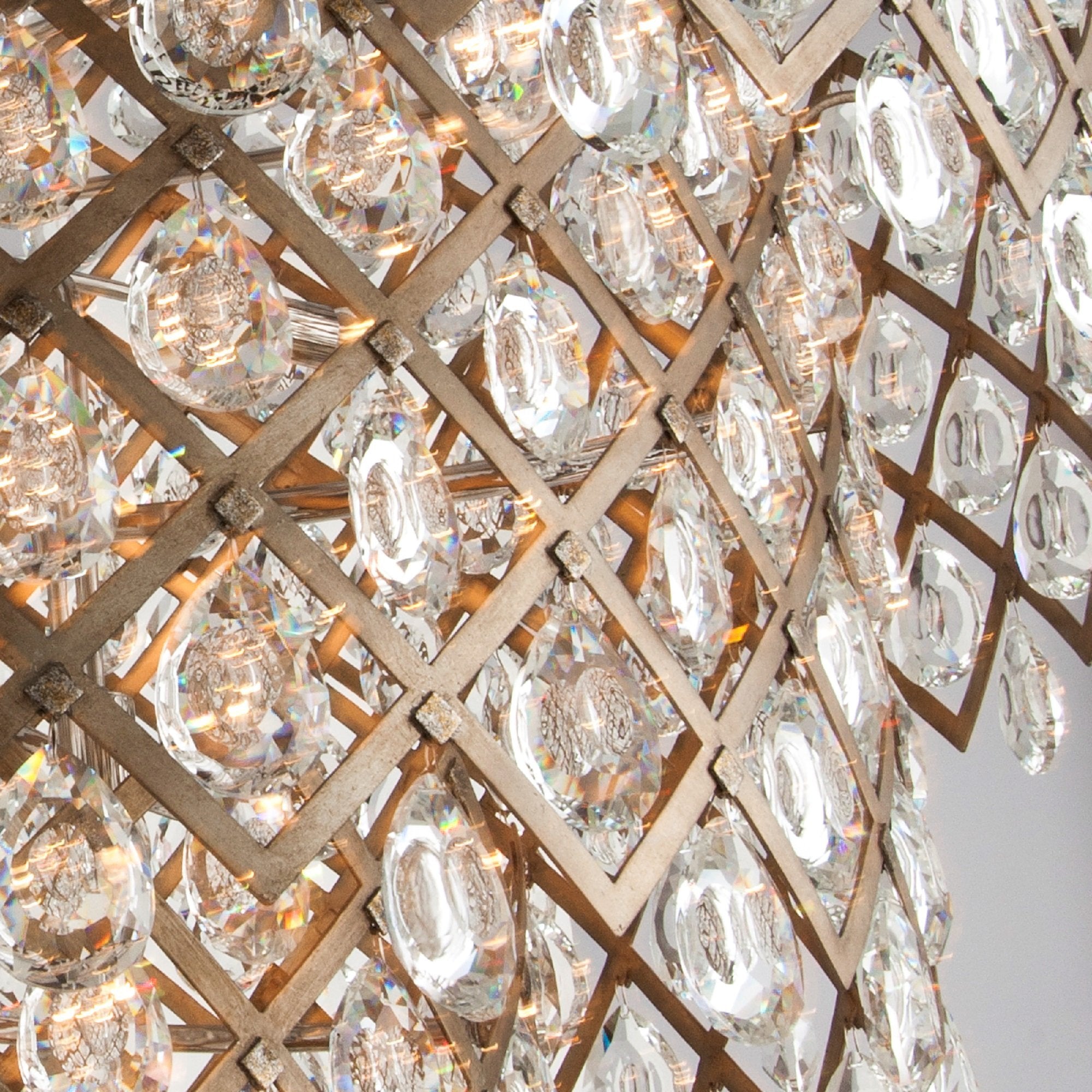 The crown jewel of lighting makes itself at home as the Tiara Pendant Light from Corbett Lighting, offering royal elegance with a lattice frame made of bronze finish metal and ornate clear crystal faceted accents serving as a diffuser.