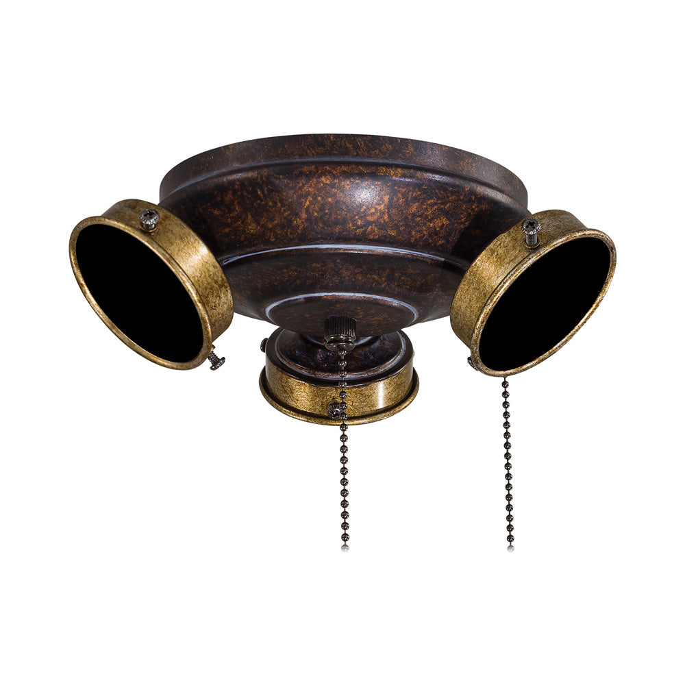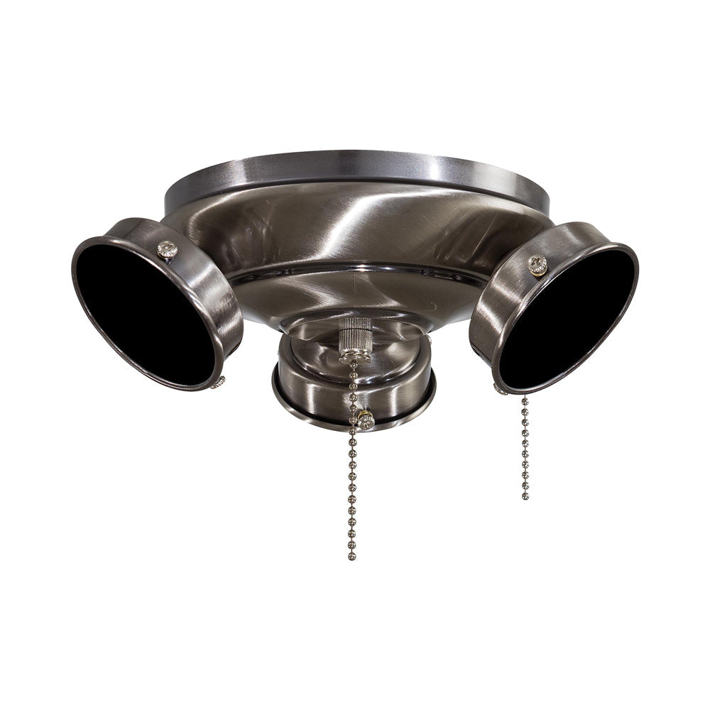 Step up the well-rounded aesthetic of a ceiling fan with the Timeless Fan Light Kit from Minka Aire. Designed for use with existing ceiling fans, this kit adds metal framing with three shade mounts and clear glass bulbs with candelabra lights, creating a hint of romance perfect for a stylish bedroom or living space. Light mounts tilt to expand the reach and angle of soft, glowing illumination operated with quaint pull-chain features.