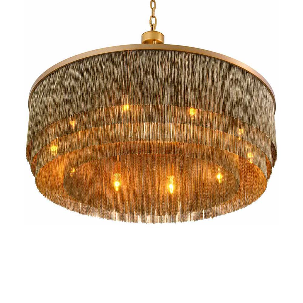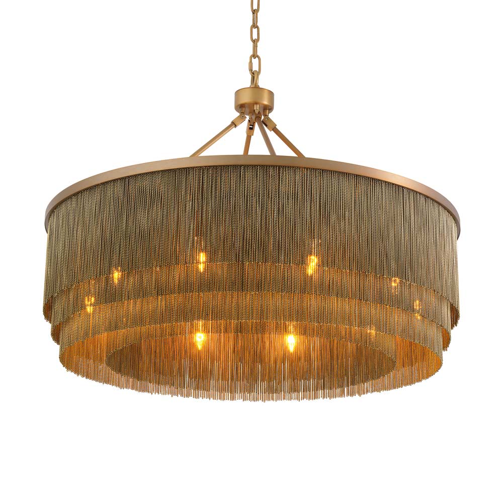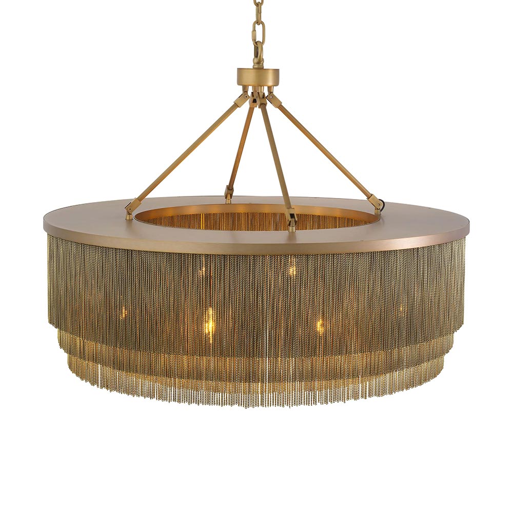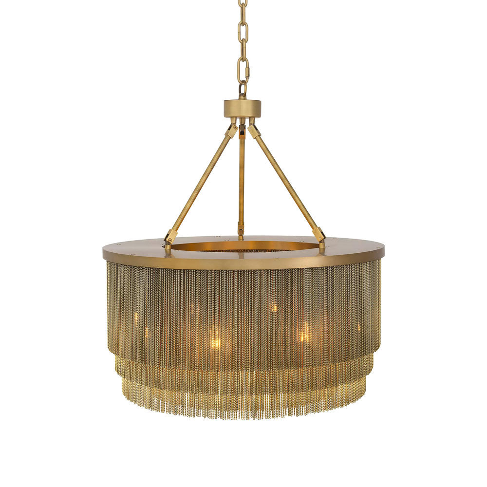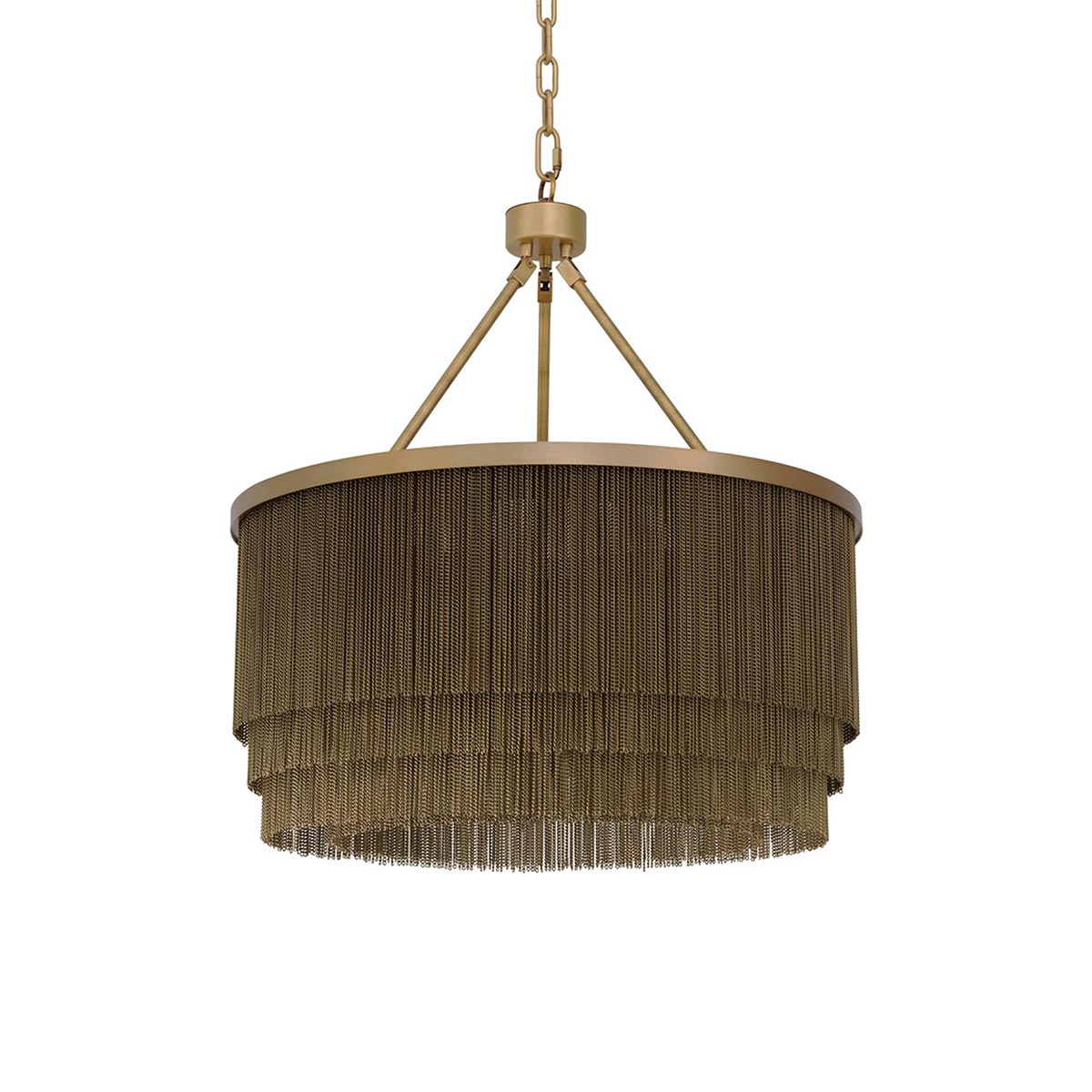 Illuminate spaces with the Tissot Chandelier from EICHHOLTZ Lighting, designed with a dizzying fringe reminiscent of the decadent Art Deco era. Slim chain fringe presents a dimensional tiered silhouette, opening up the textures and ambiance of a room with its regency flair.