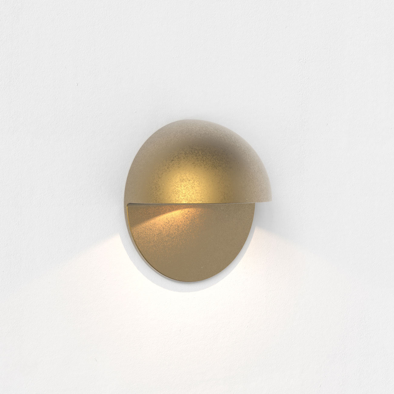 Golden hues and a captivating silhouette elevate the Tivola LED Wall Light from Astro Lighting into a chic minimalist statement piece for hallways and focal walls. The downcast glow from this energy-efficient wall light accentuates the cleft shape, presenting an eclipse like nature.