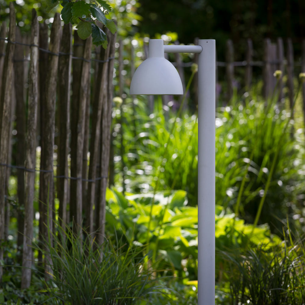 Highlight garden features and brighten pathways with the impeccable, classic style of the Toldbod Outdoor Bollard from Louis Poulsen. An elliptical shade protrudes from a straight stem, offering a wash of downlighting to brighten everything from pathway to the shore to a relaxed rooftop garden.