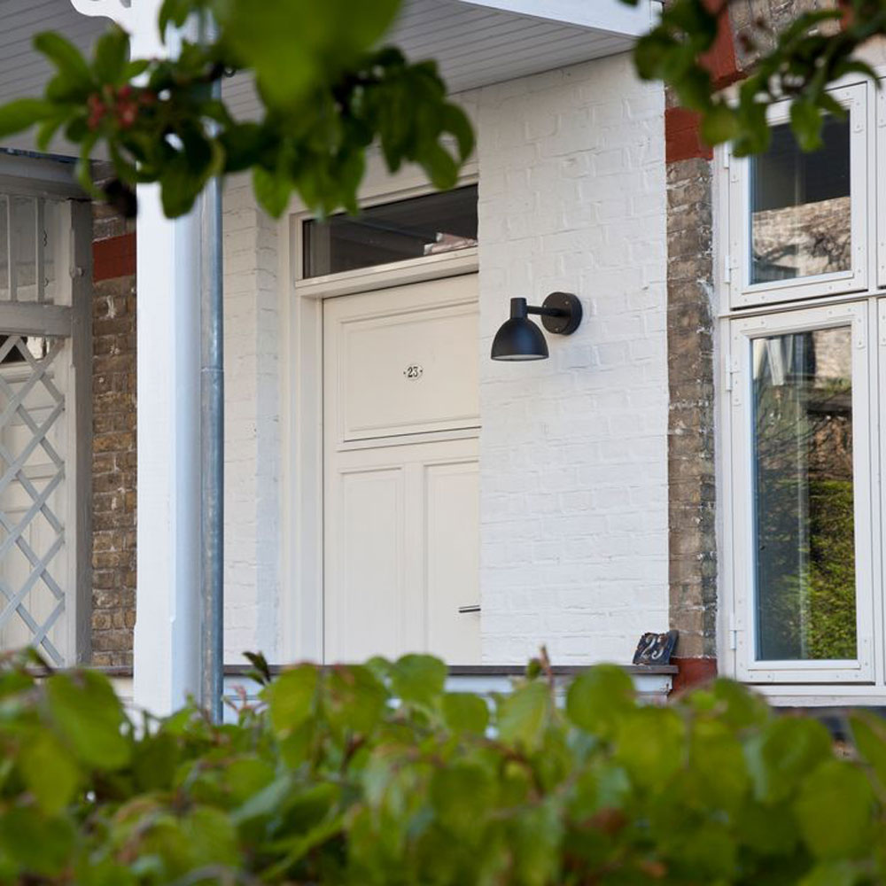 Modern meets classic in the clean profile and familiar design of the Toldbod Outdoor Wall Light from Louis Poulsen. A graceful elliptical shade pairs with a contemporary textured finish to cast a lovely wash of downward illumination across a porch, patio, or outdoor living room.