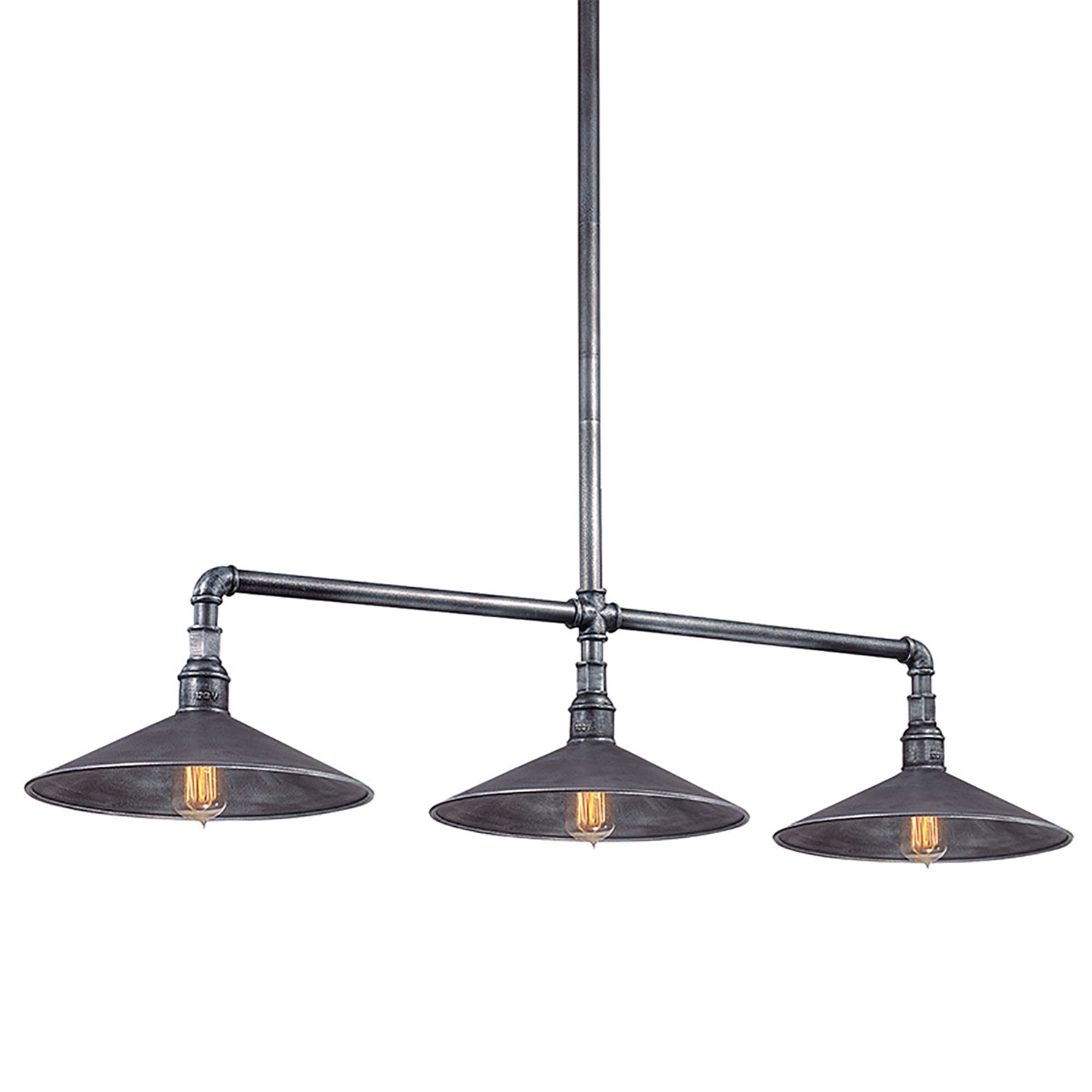 Gather friends and family in the warm glow of the Toledo Outdoor Linear Pendant Light from Troy Lighting as it boasts wide cone shades and a cool old silver finish.