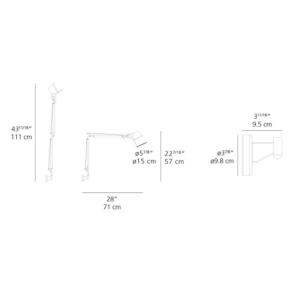 Exceptional in a sophisticated workspace, the Tolomeo LED Wall Light from Artemide shows off a pulley design within a structured, adjustable framework.