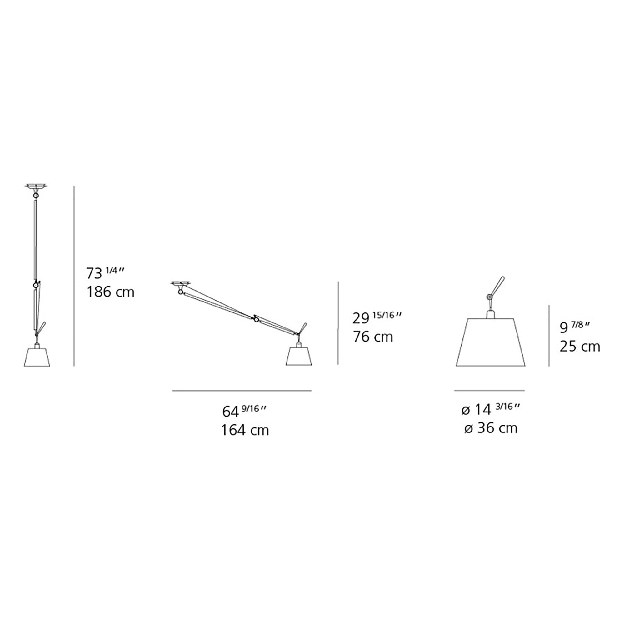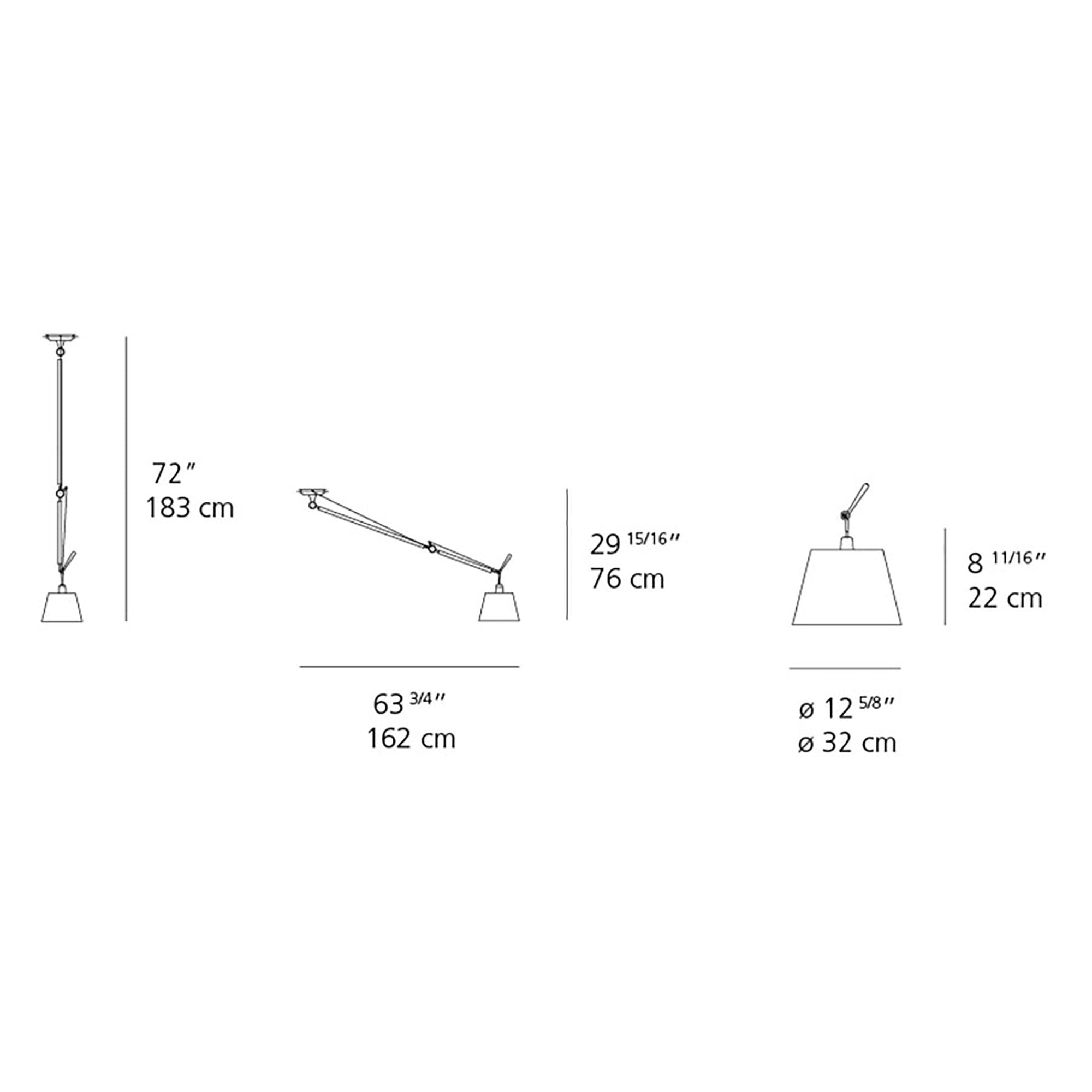 Turn conventional design upside down with the striking, industrial touches of the Tolomeo Off-Center Suspension Light from Artemide.