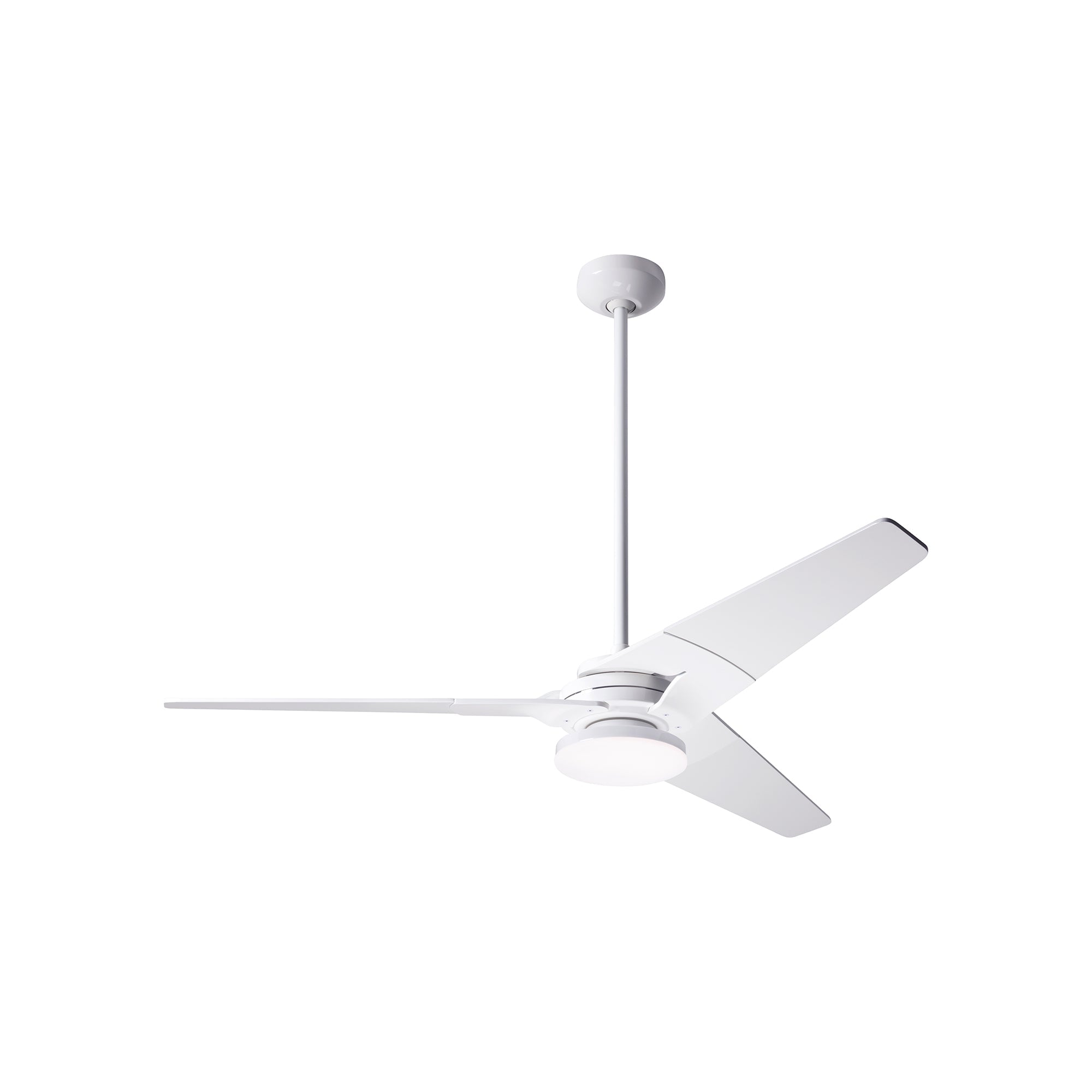 Embrace a sleek industrial vibe in the Torsion 52-Inch 20W LED Ceiling Fan from Modern Fan Company and work it into a suitable room design, enjoying both air circulation and energy-efficient lighting. Three tapered blades and a detail-rich motor complement a slender down rod, all featuring construction of die cast aluminum and stamped steel.
