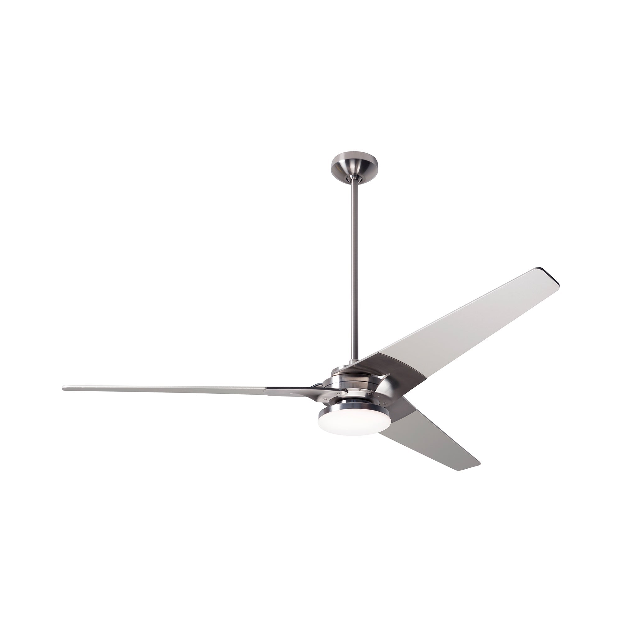 Embrace a sleek industrial vibe in the Torsion 62-Inch 20W LED Ceiling Fan from Modern Fan Company and work it into a suitable room design, enjoying both air circulation and energy-efficient lighting. Three tapered blades and a detail-rich motor complement a slender down rod, all featuring construction of die cast aluminum and stamped steel.
