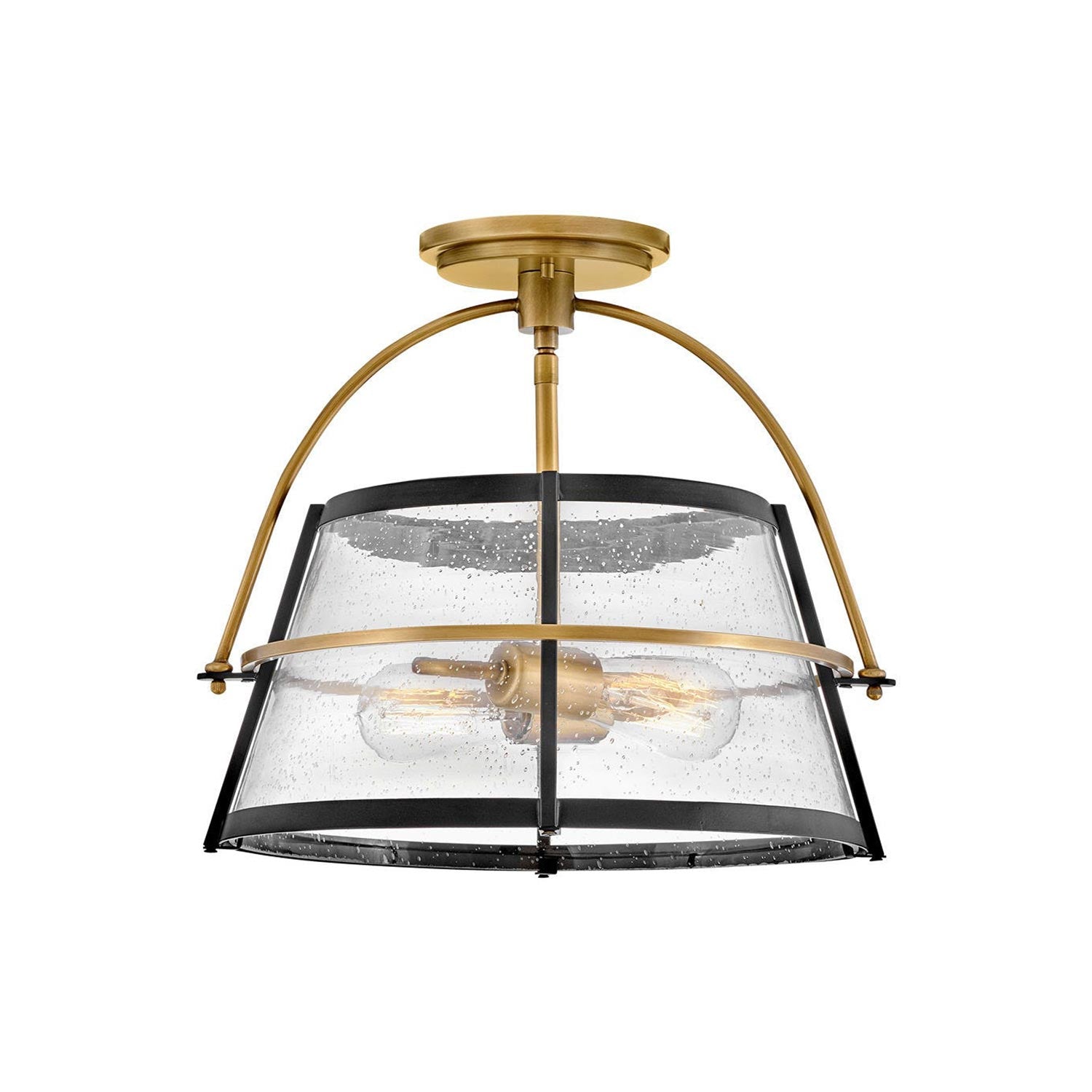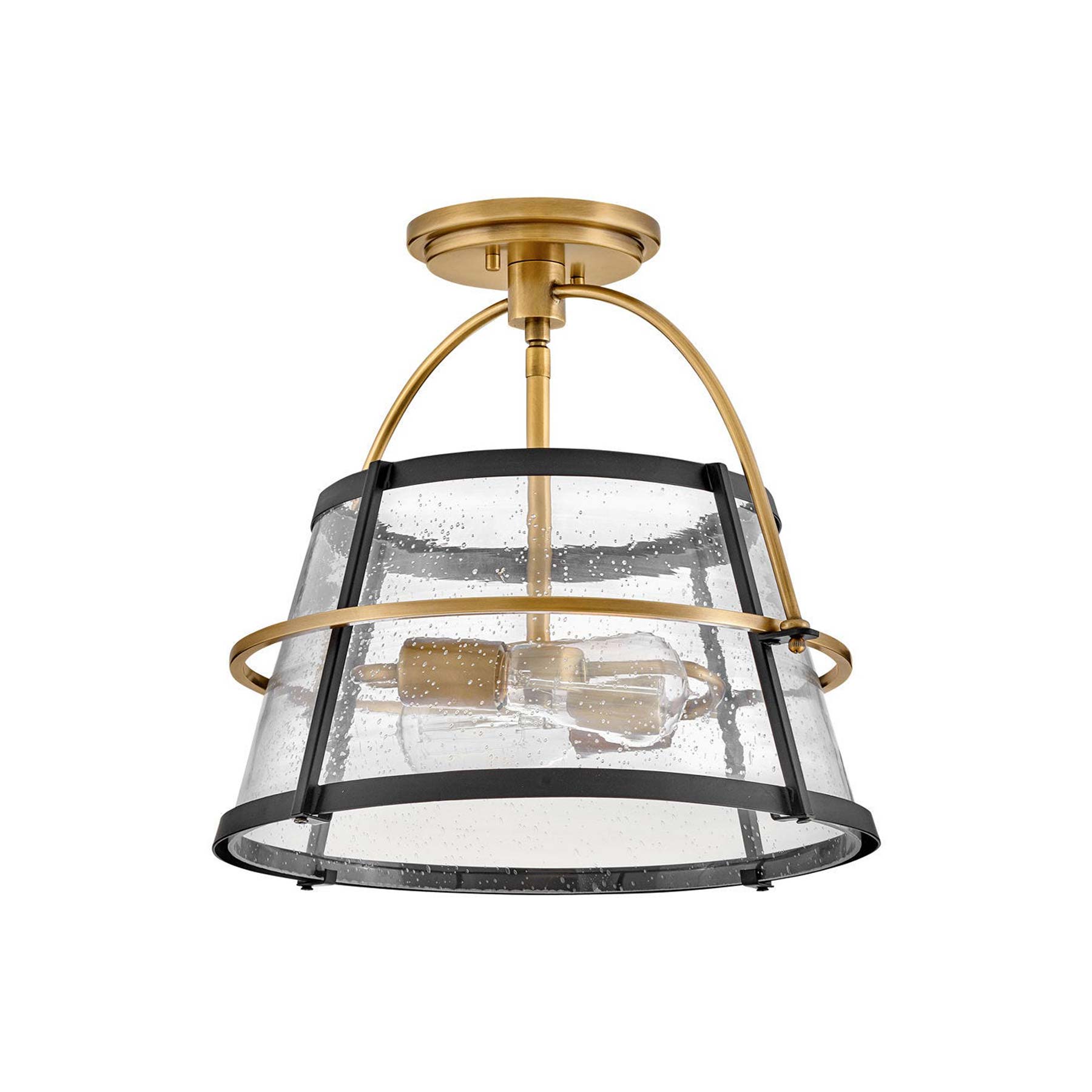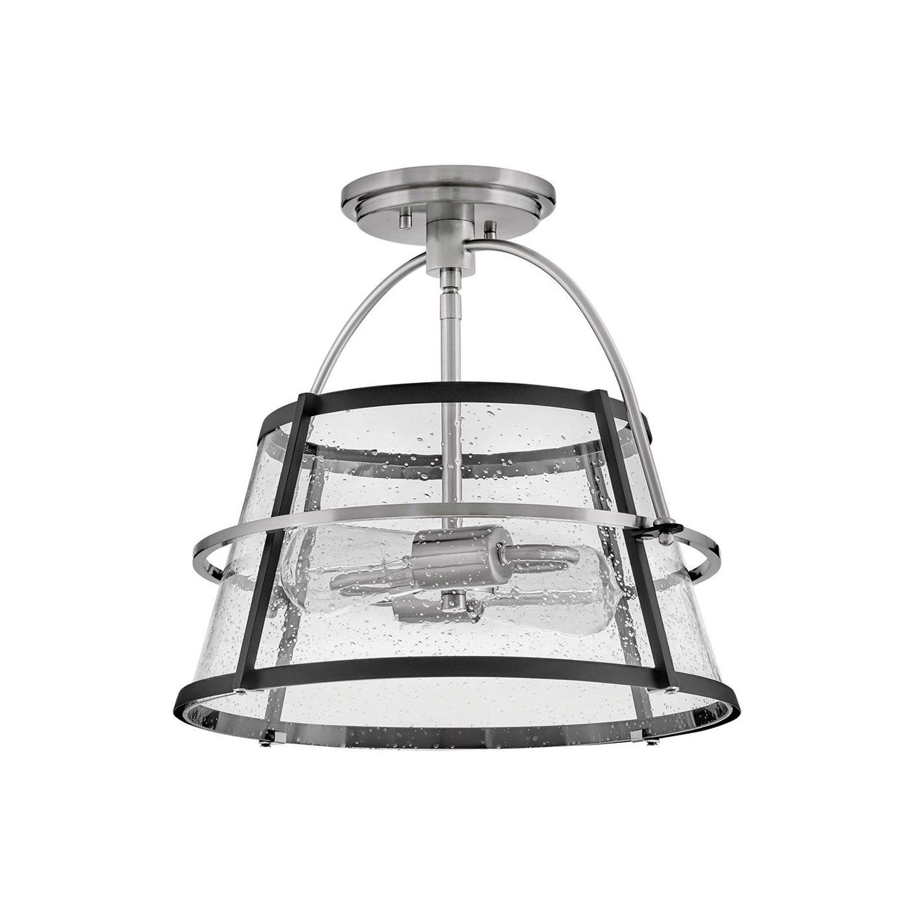Take timeless design and blend it with modern functionality to create the superb Tournon Semi-Flush Mount Ceiling Light from Hinkley. A gorgeous collar of clear seedy glass sits within a distinctive steel frame, creating contrast and sculptural appeal that enchants in an entry or breakfast nook.