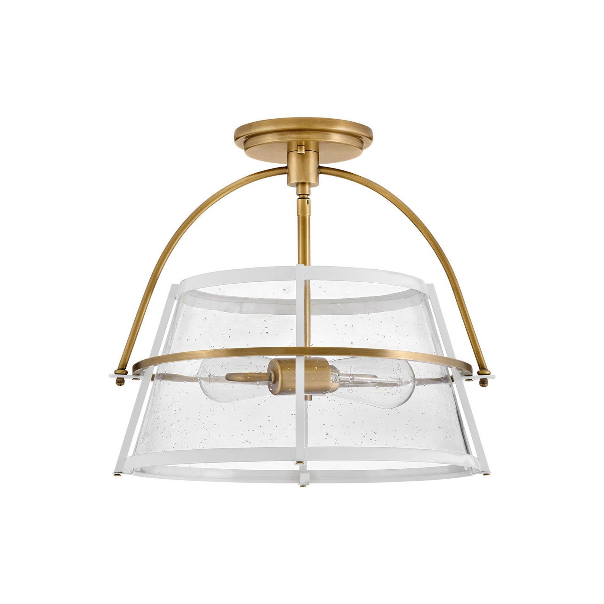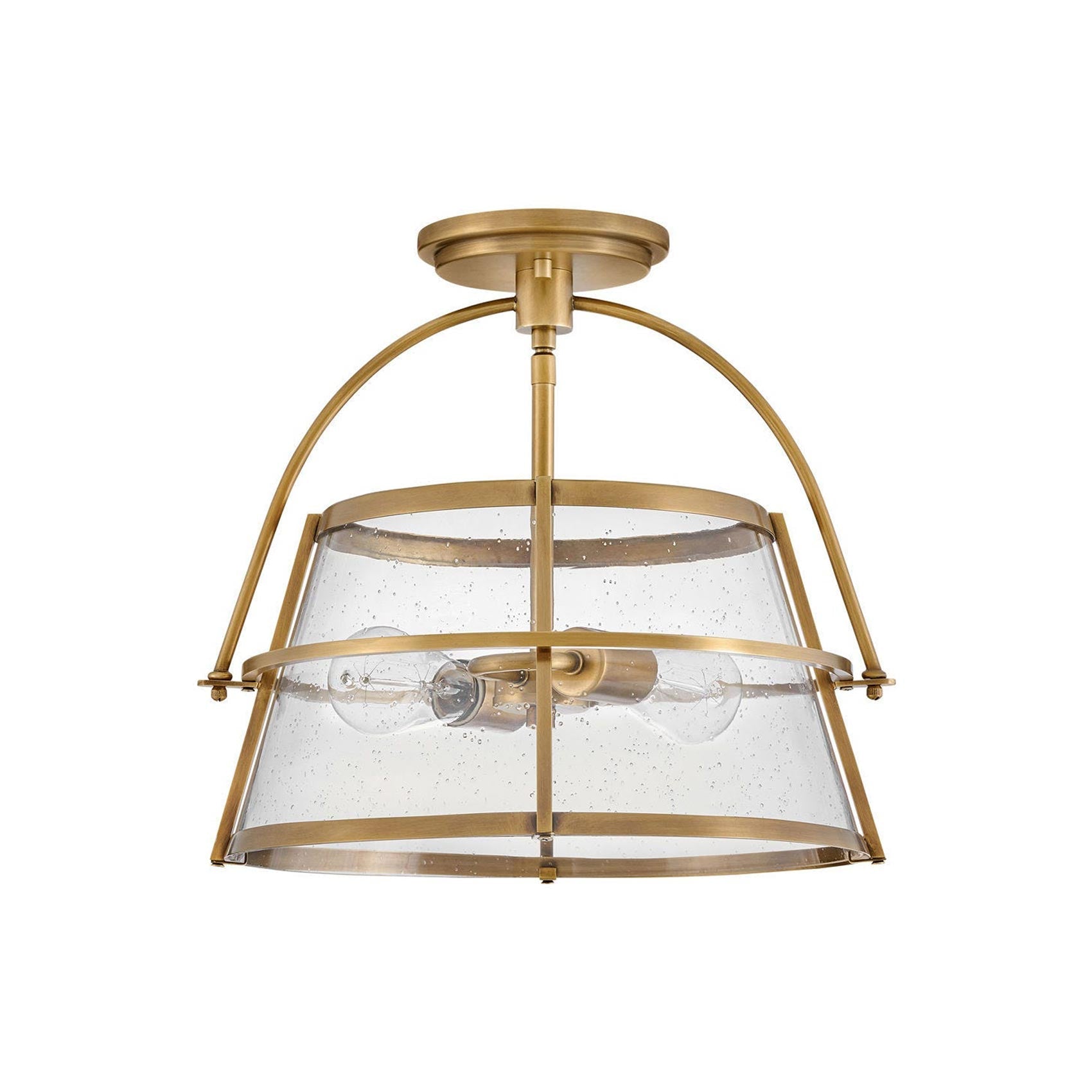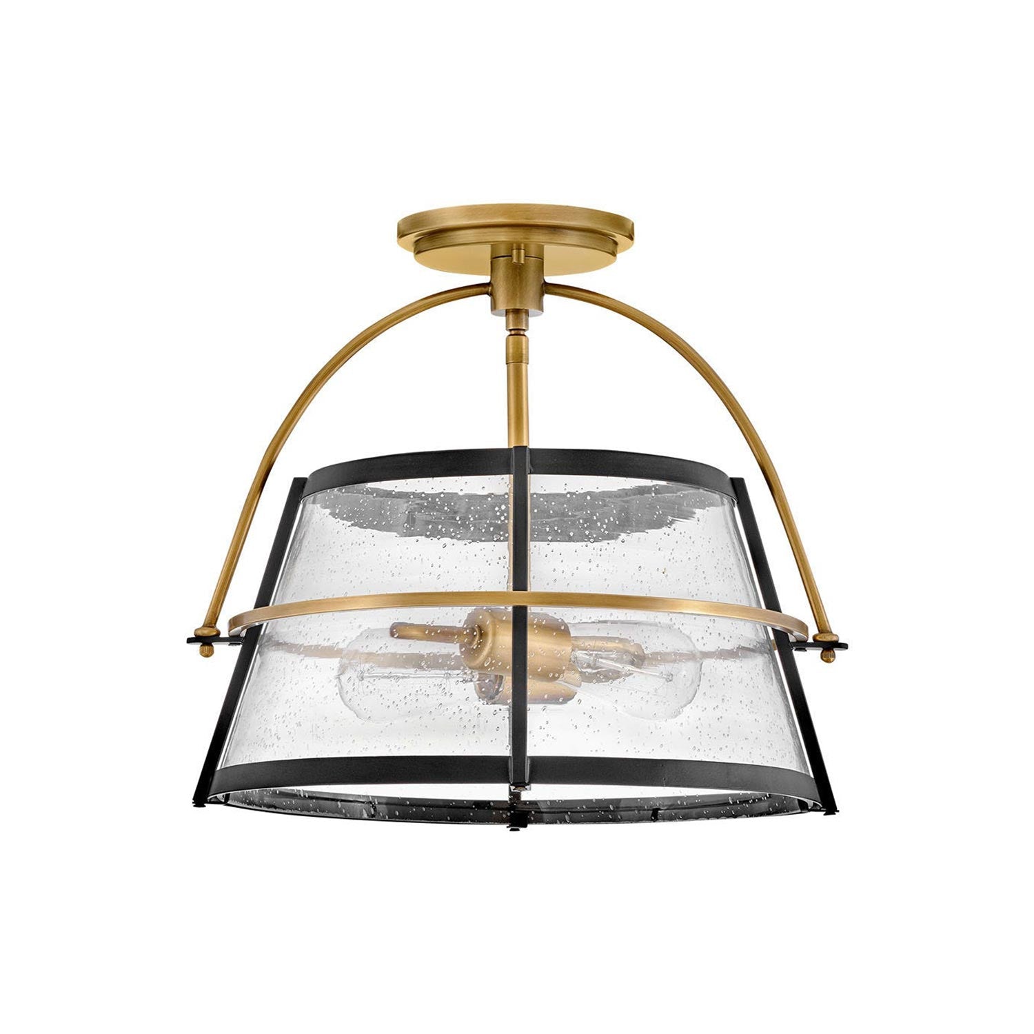 Take timeless design and blend it with modern functionality to create the superb Tournon Semi-Flush Mount Ceiling Light from Hinkley. A gorgeous collar of clear seedy glass sits within a distinctive steel frame, creating contrast and sculptural appeal that enchants in an entry or breakfast nook.