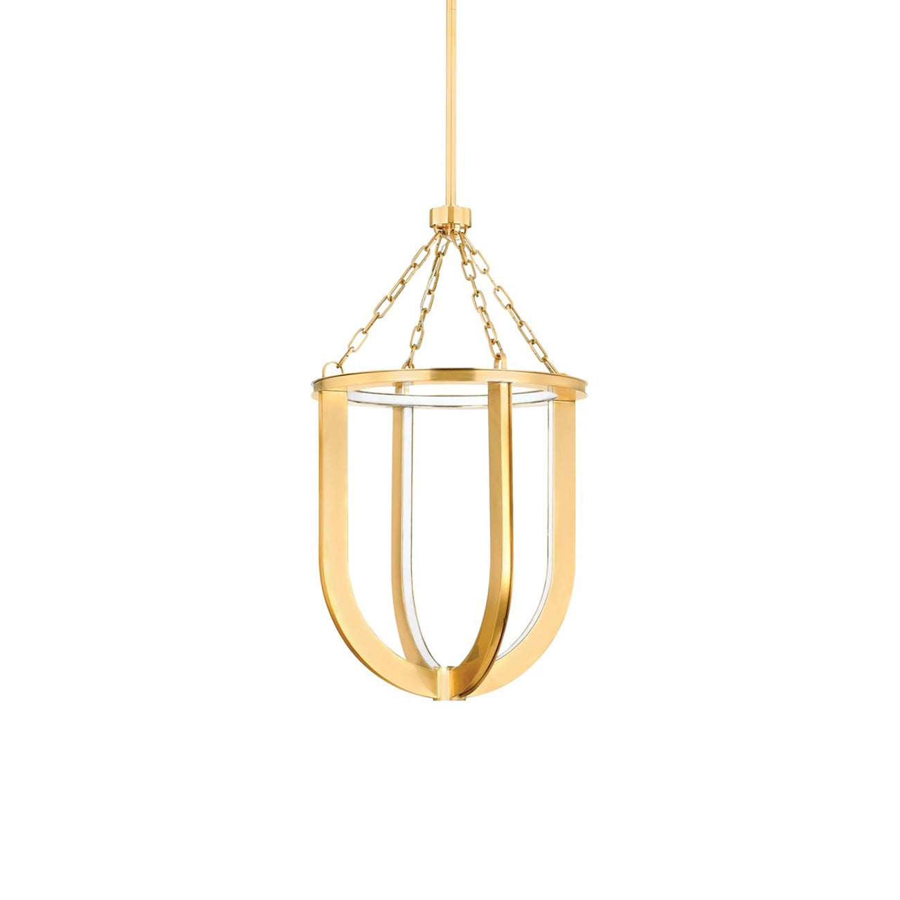Classic with a curvy silhouette, the Tournu LED Pendant Light from Hudson Valley Lighting delivers simple style with a glam touch and energy-efficient illumination. Rounded metal sections create an open lantern-like design, showcasing the rich warmth of aged brass finish metal. Chain link suspension culminates in a straight stem, all contributing to an orderly shape.