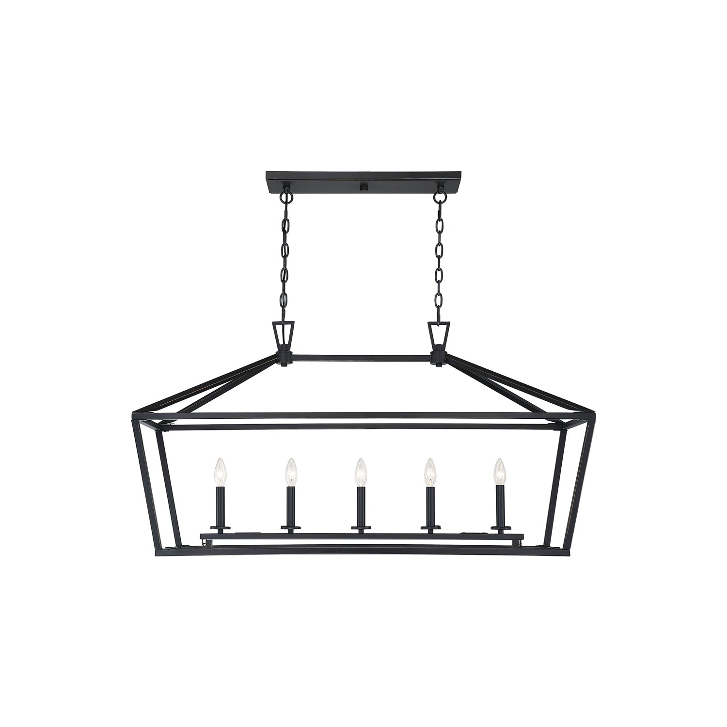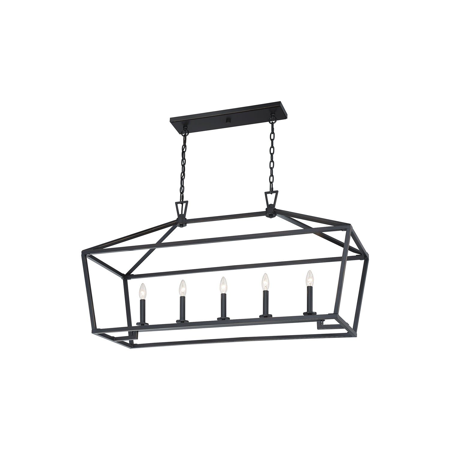 With a crisp geometric silhouette and charming lantern inspiration, the Townsend Linear Chandelier from Savoy House brings definition and industrial attitude to a transitional kitchen, bar space, or dining ensemble. Bold, brilliant styling uses an openwork metal design with a tempting row of candelabra-style lights adding a soft touch. This fixture is a throwback to classic billiard room personality.