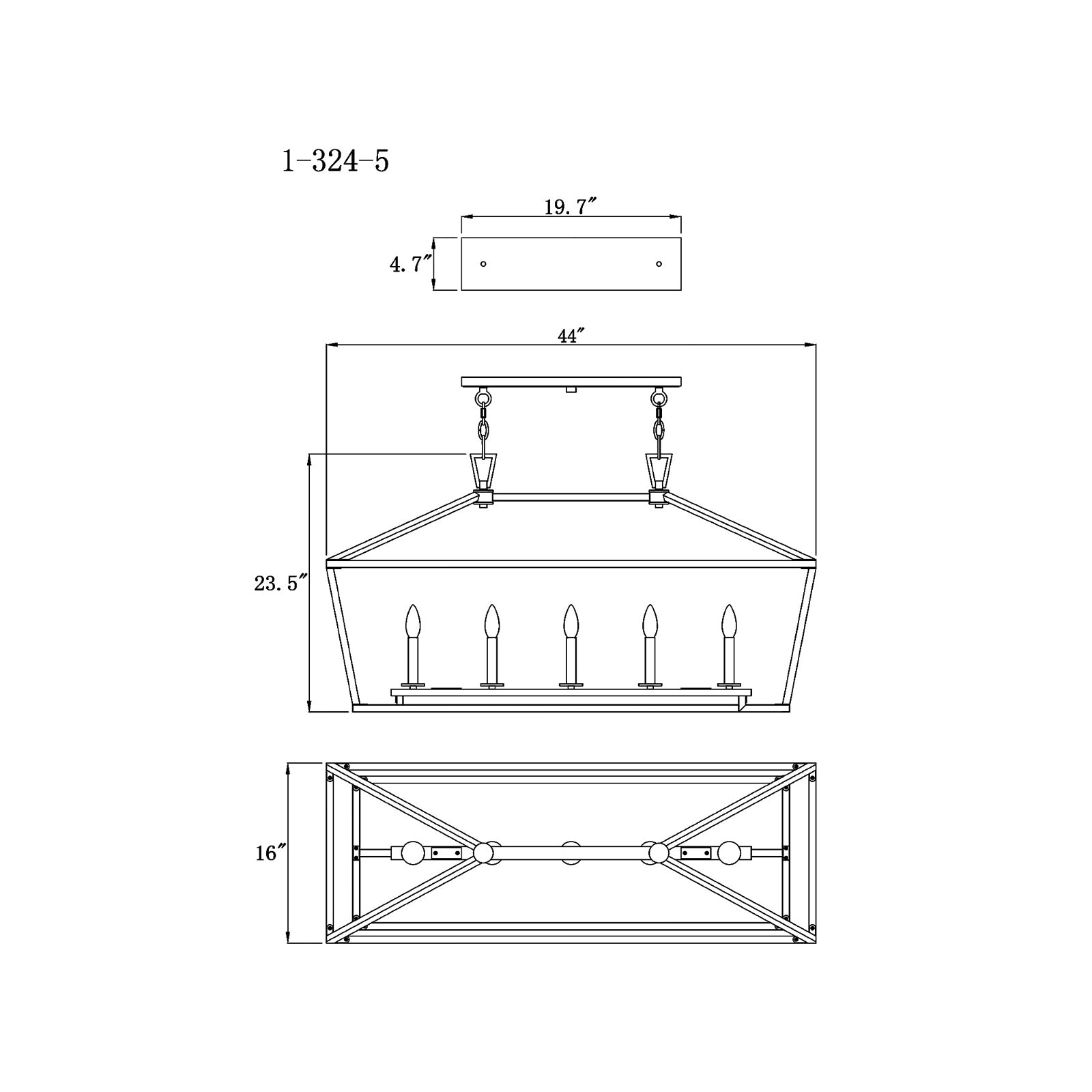 - 5 X 60W 120V E12(candelabra base) Type B incandescent lamps (not included)