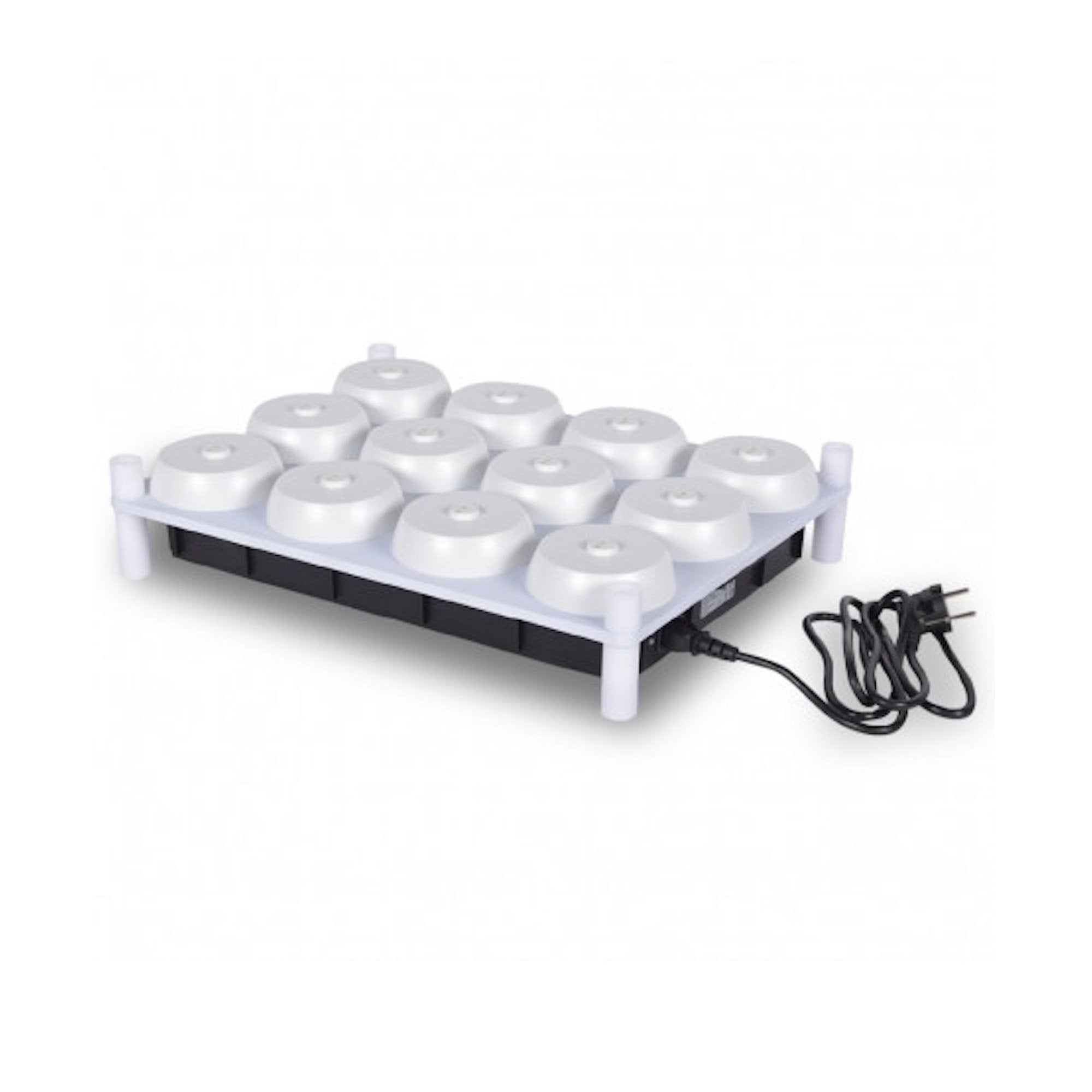 TRAY BULB is a recharging panel for simultaneously recharging 12 BULBs on the same plug.
