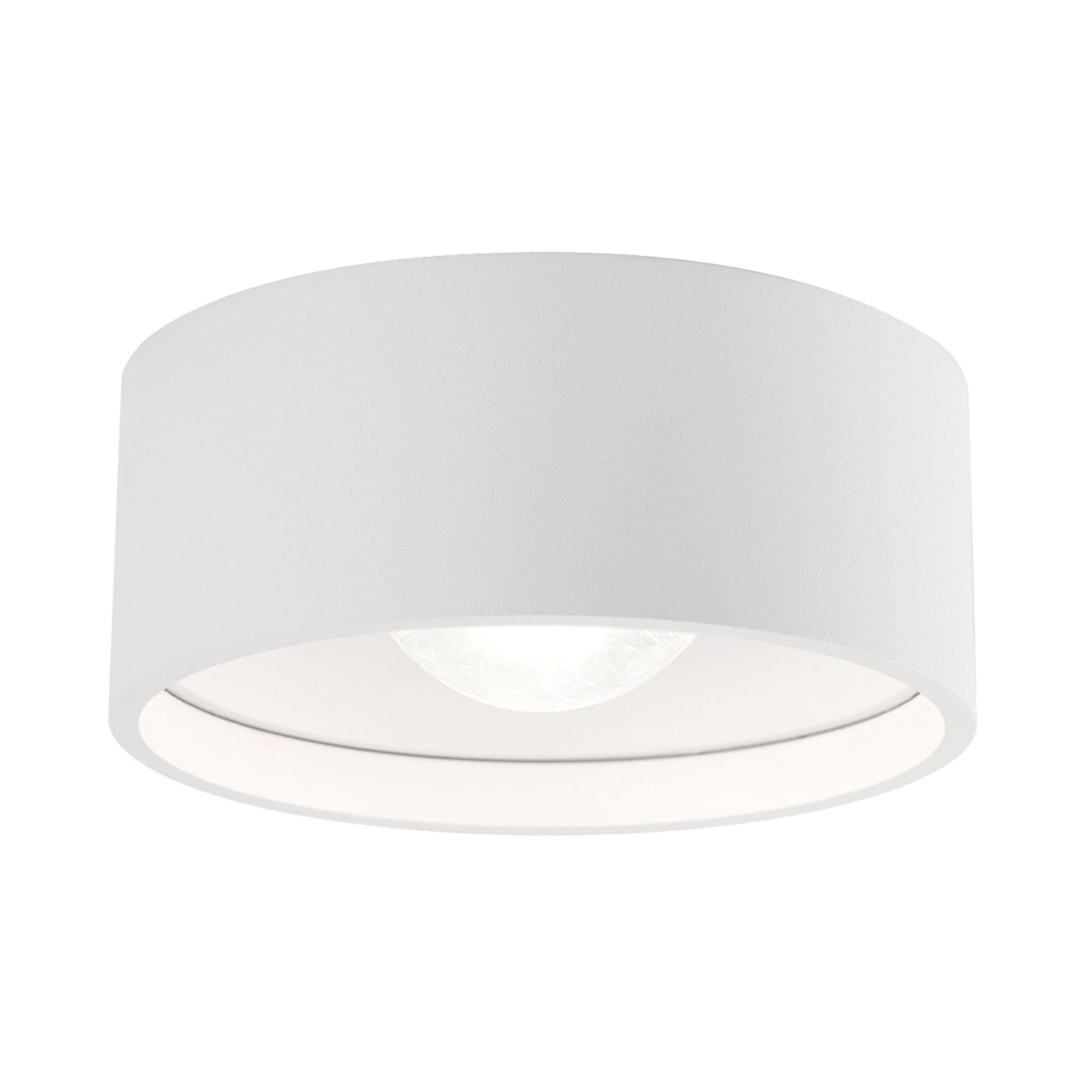 Cast cylindrical aluminum housing and ceiling mount. Finely textured achromatic powder-coat finish. Opal diffuser or transparent optical lens. Down light. Custom options available.