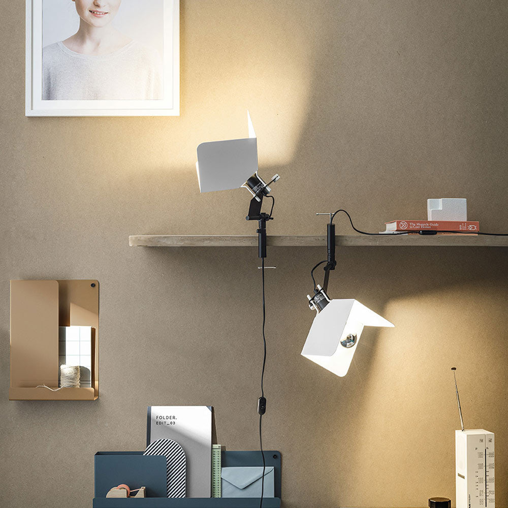 A pair of mounting and usage options magnifies usability as the Triedro Table Lamp/Wall Light from Stilnovo adds a cool industrial motif to a casual space. Metal framing with an origami-inspired silhouette creates a hybrid artisan and architectural aesthetic, with a brilliant shite finish blending with bold black elements. As a desk or table lamp or a wall-mounted fixture, it wakes up fresh energy.
