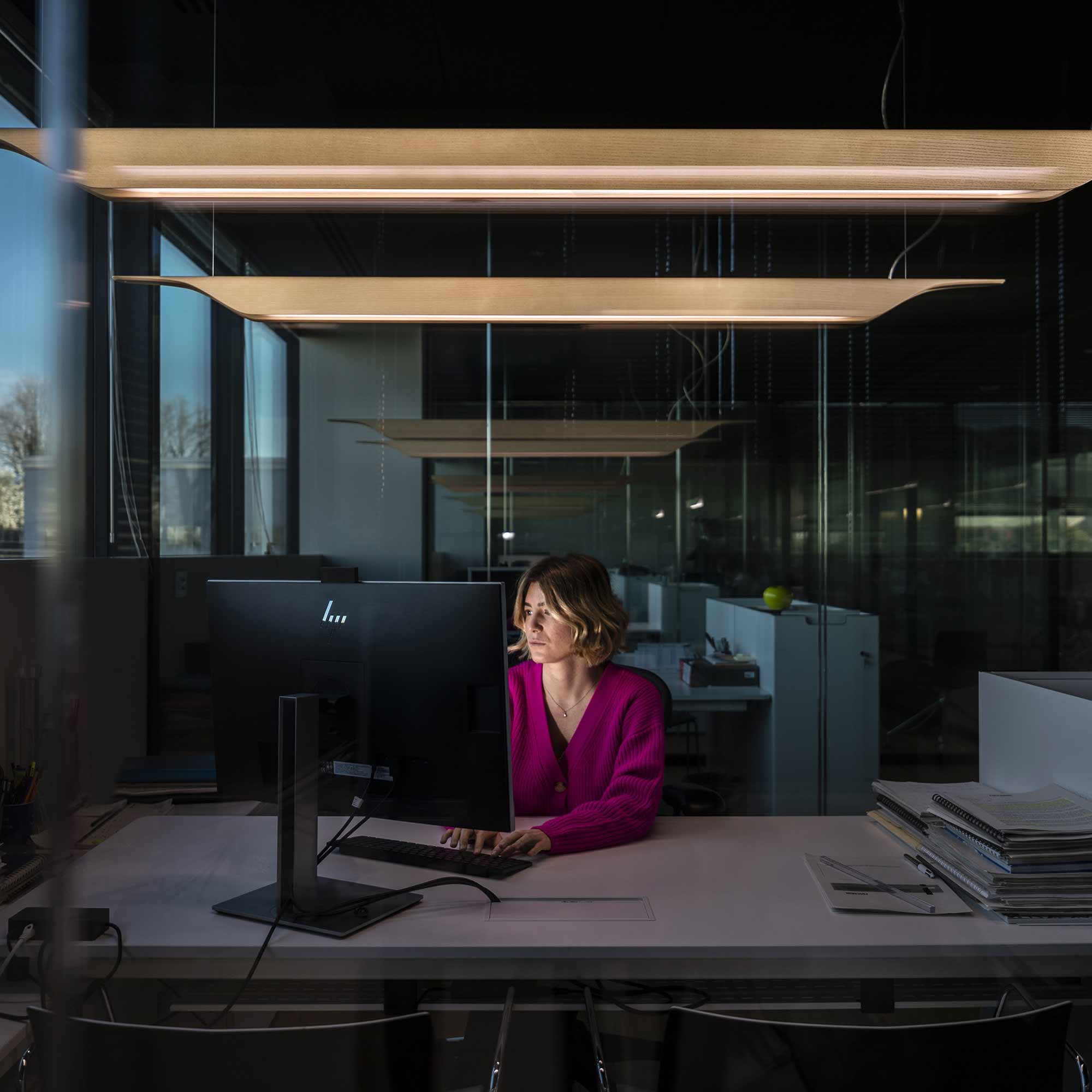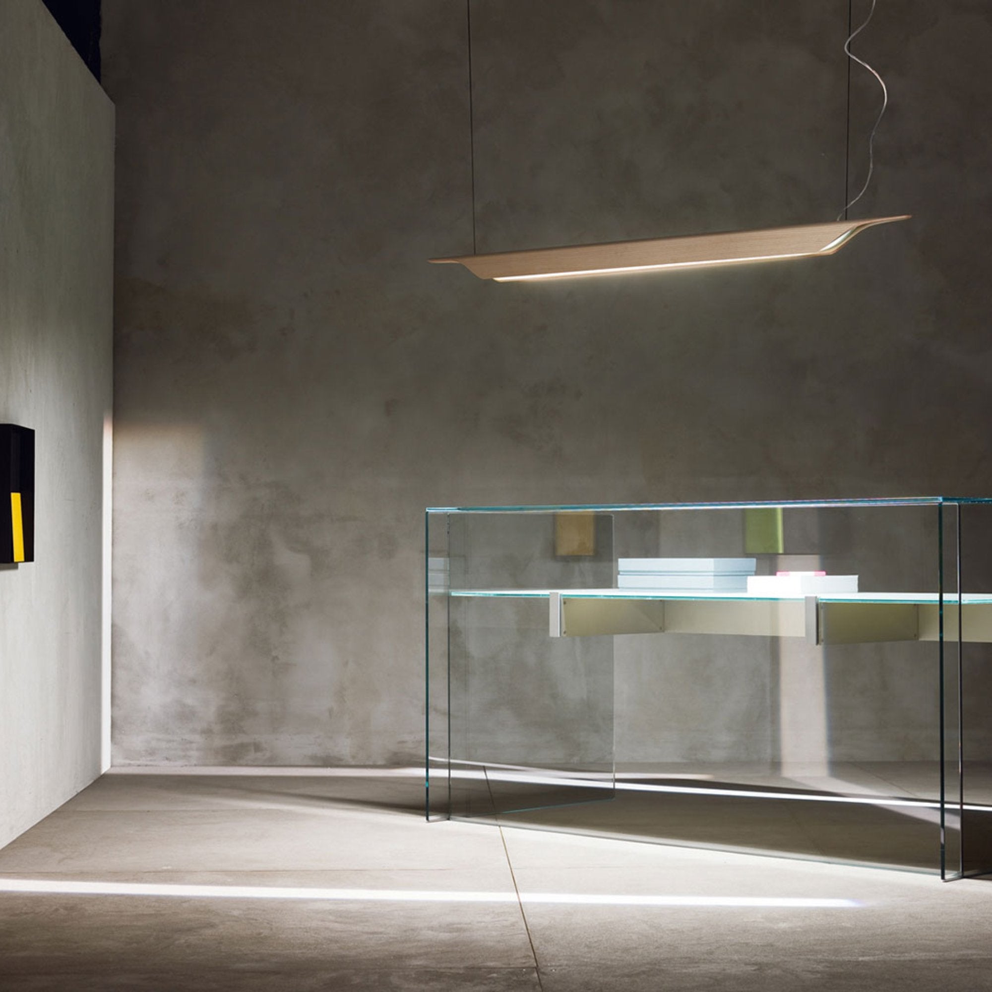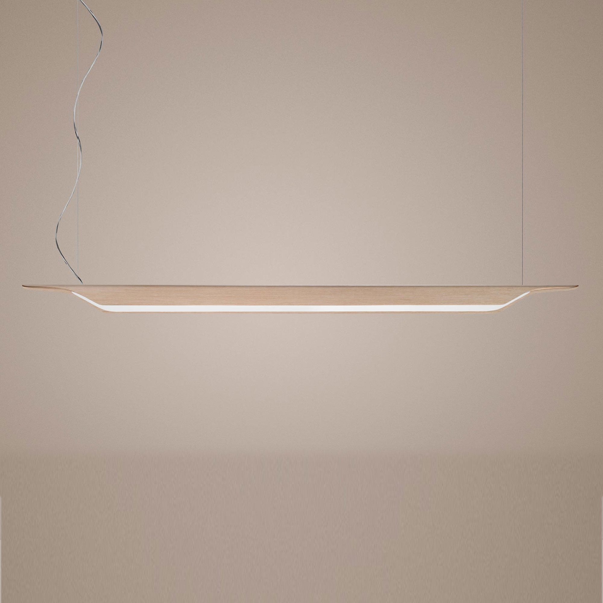 Nordic meets Mediterranean with the construction of the Troag Linear Suspension Light from Foscarini. A wood frame makes an alluring vertical shape, allowing it to streamline the appearance of a dining room or breakfast bar area with ocean views.