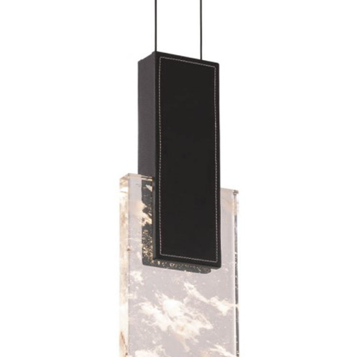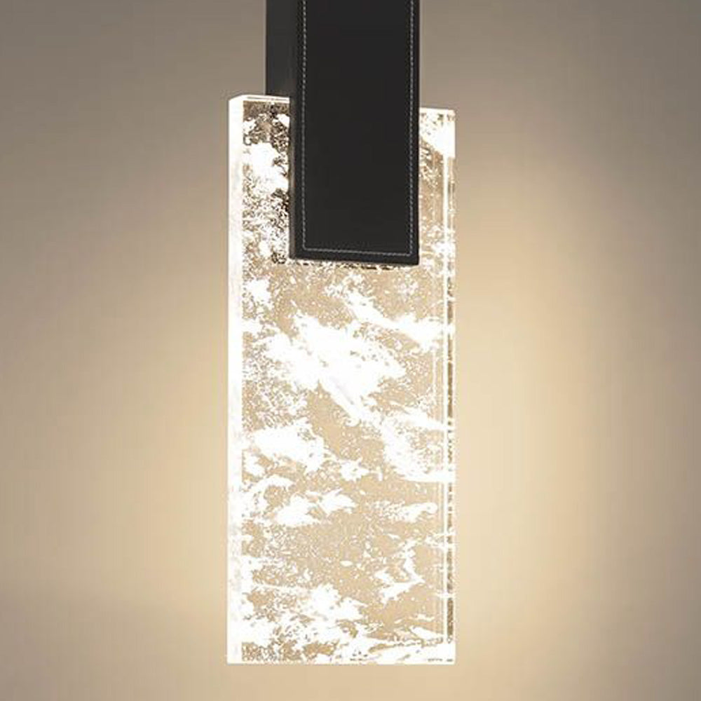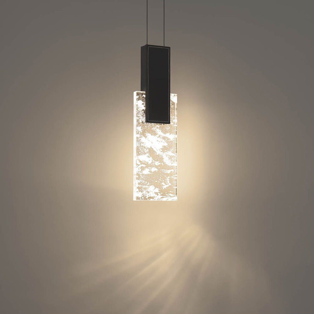 Simple silhouetting belies the ultra-glam character in a light fixture created to impress. Rectangular shapes present a minimalist look to the Tryst LED Pendant Light from Schonbek, while decadent crystal-like quartz forms a slender diffuser with organic occlusions and a basic metal pocket frame maintains the simplicity of basic shaping.