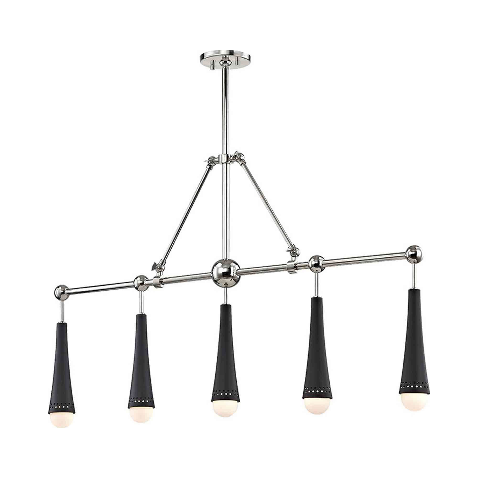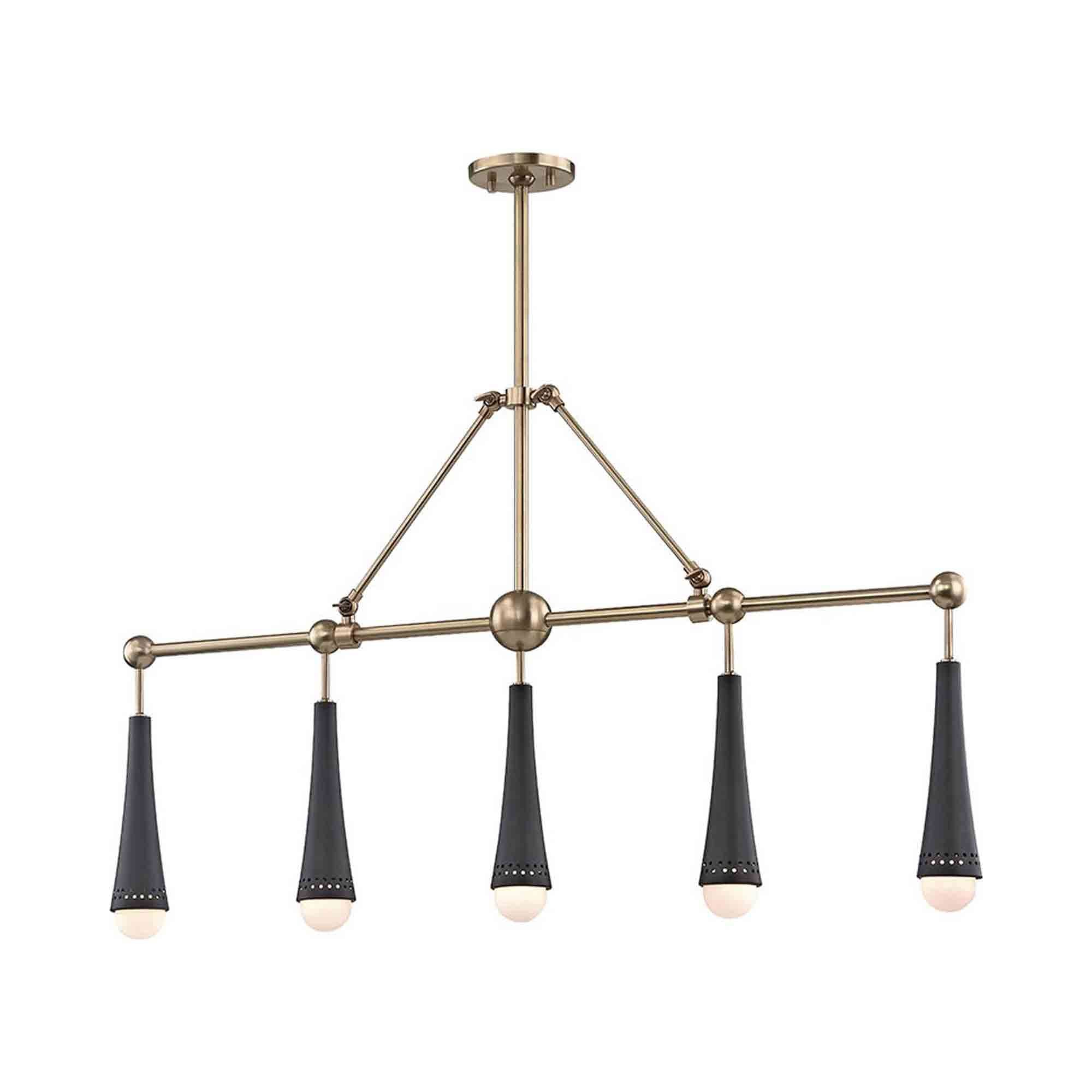 Ideal for lending dramatic artistry to a kitchen island or entertaining space, the energy-efficient Tupelo Linear Pendant Light from Hudson Valley Lighting mixes shapes and finishes to create a stylized version of farmhouse-industrial, adding ambient lighting and a clear focal point in a custom room.