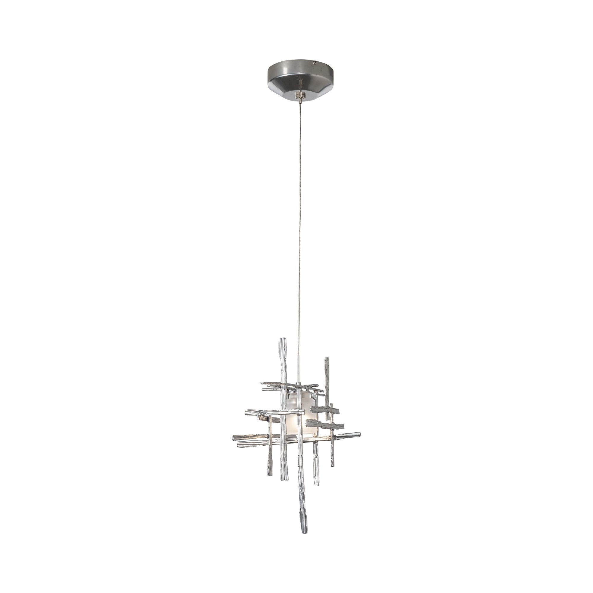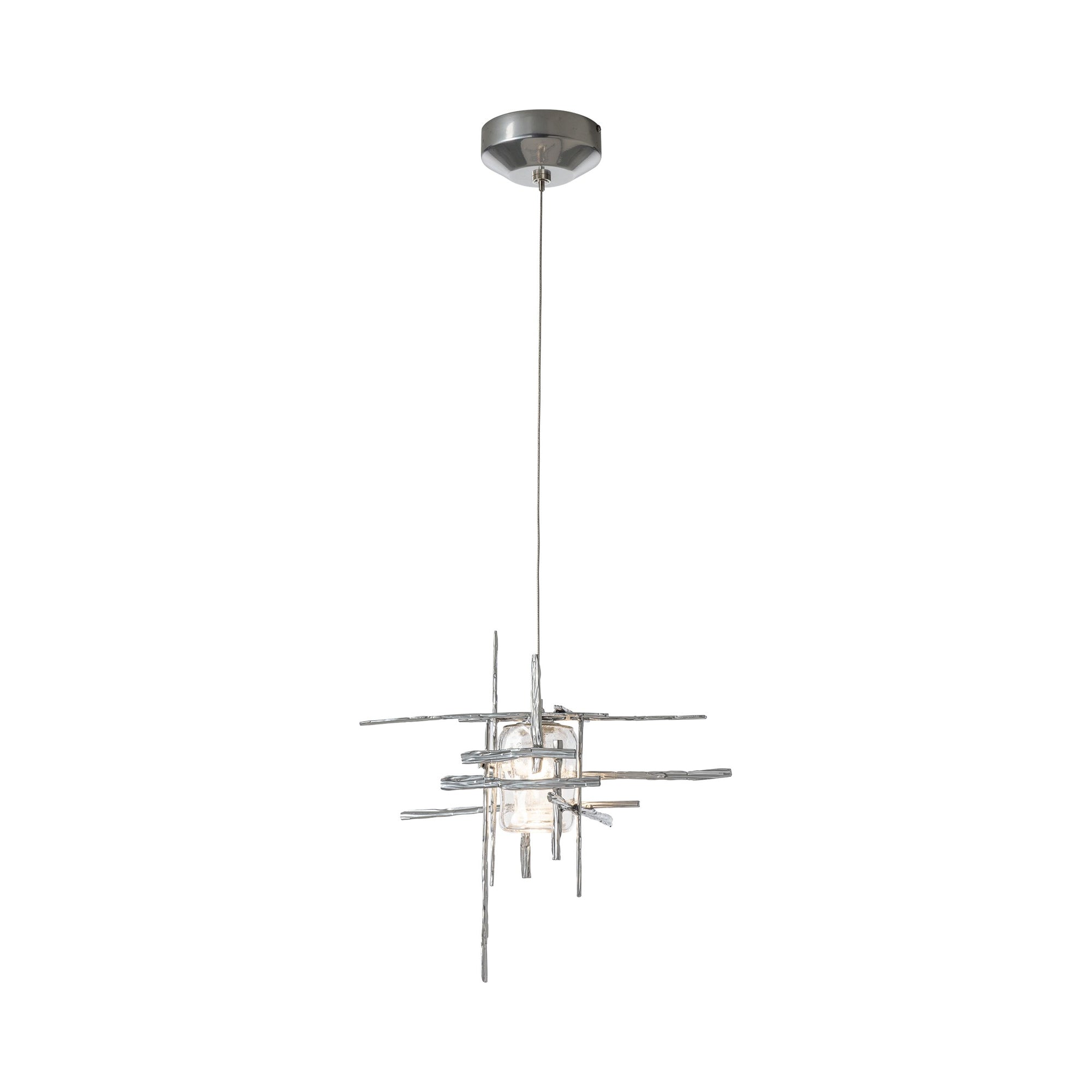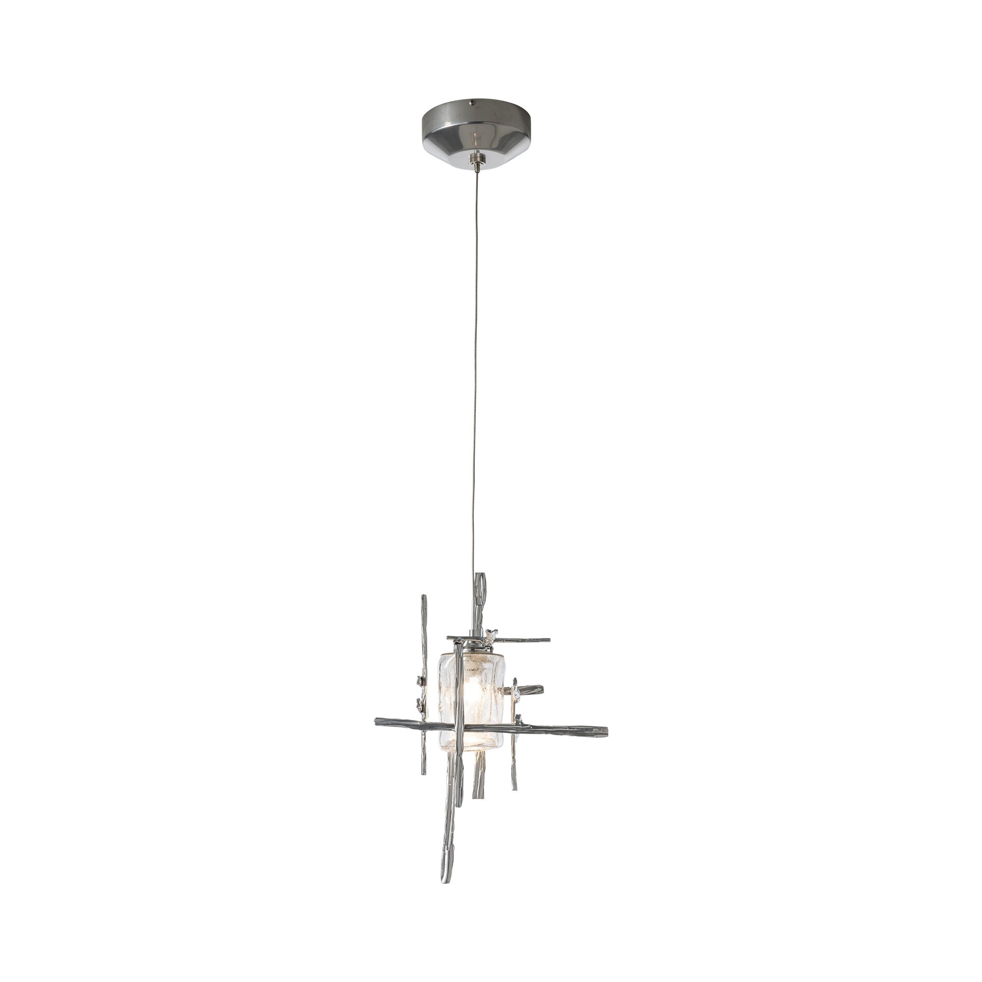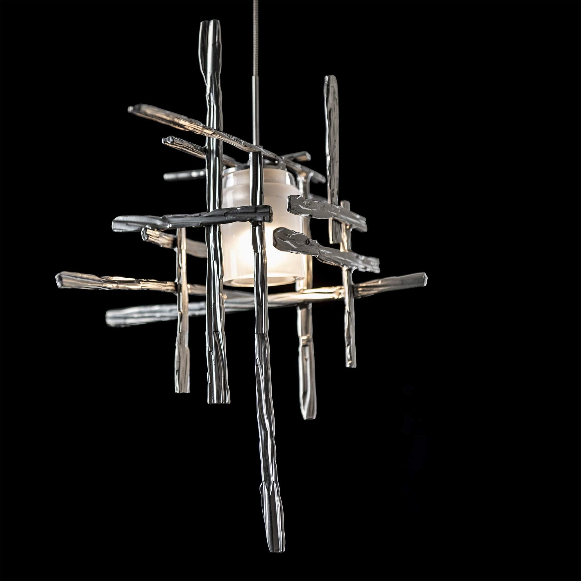 A cage of perfectly balanced branches create exceptional texture and dimension for the Tura Mini Pendant Light from Hubbardton Forge. A single light glows through beautiful glass at its center, offering a chic but organic ambiance in a powder room or in series over a kitchen island.
