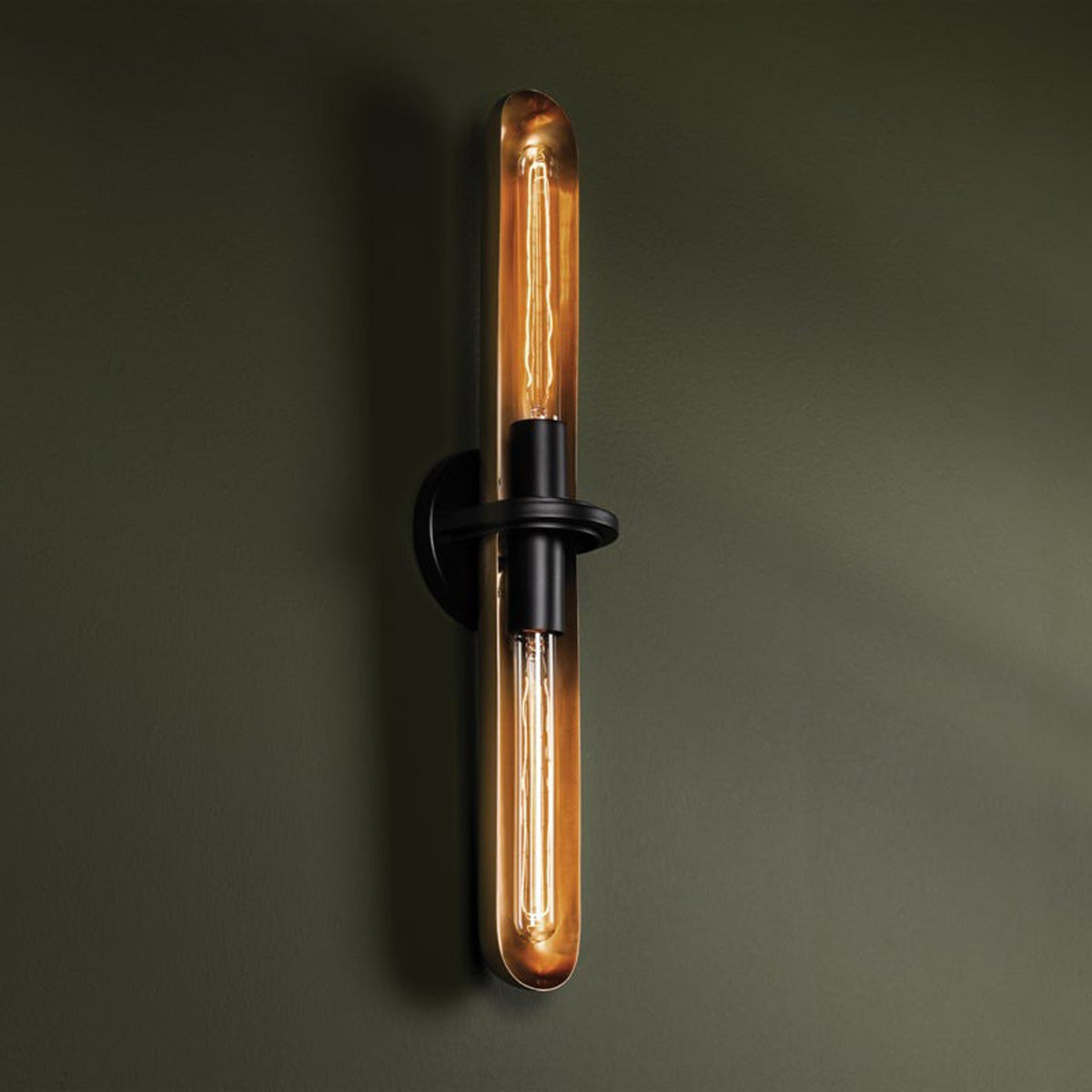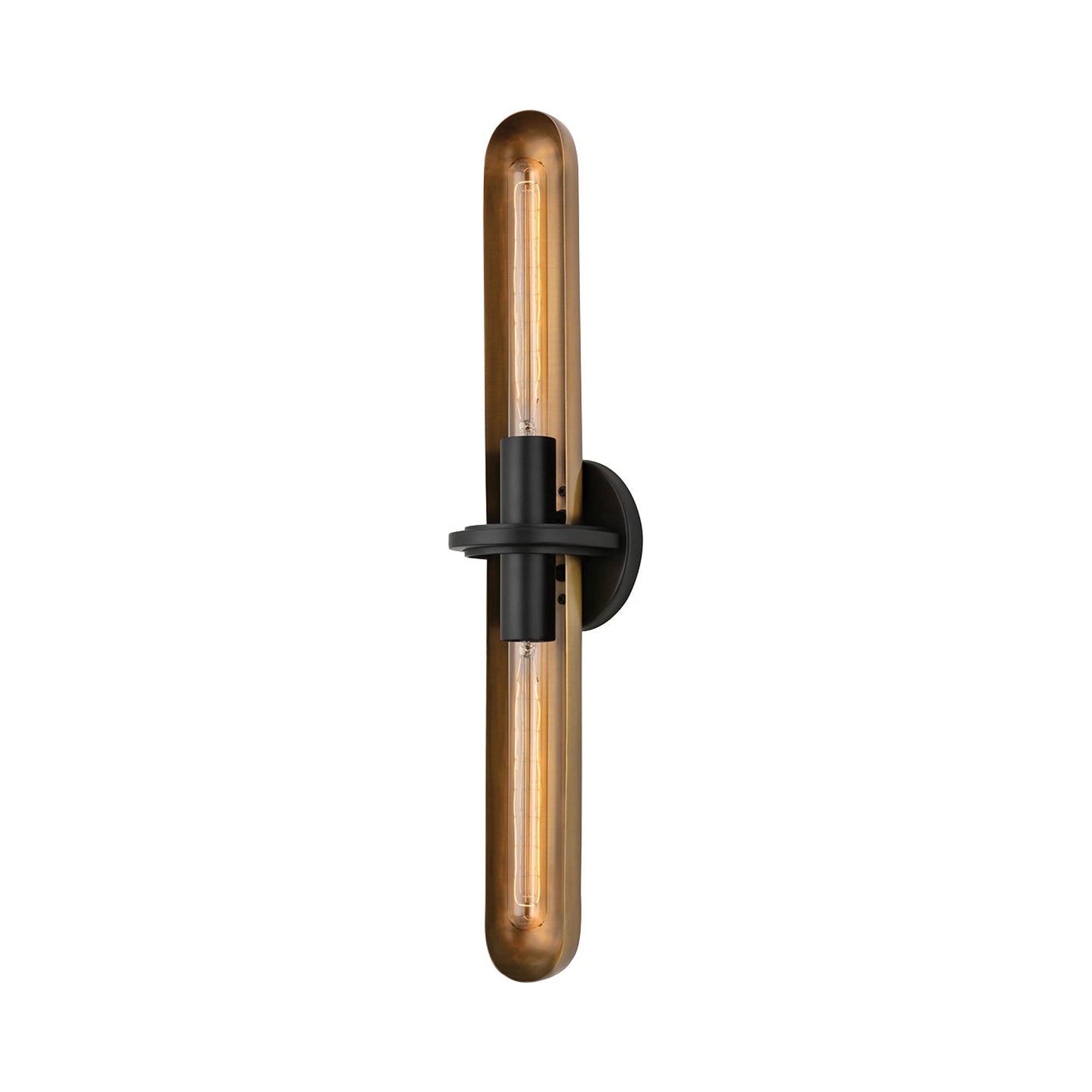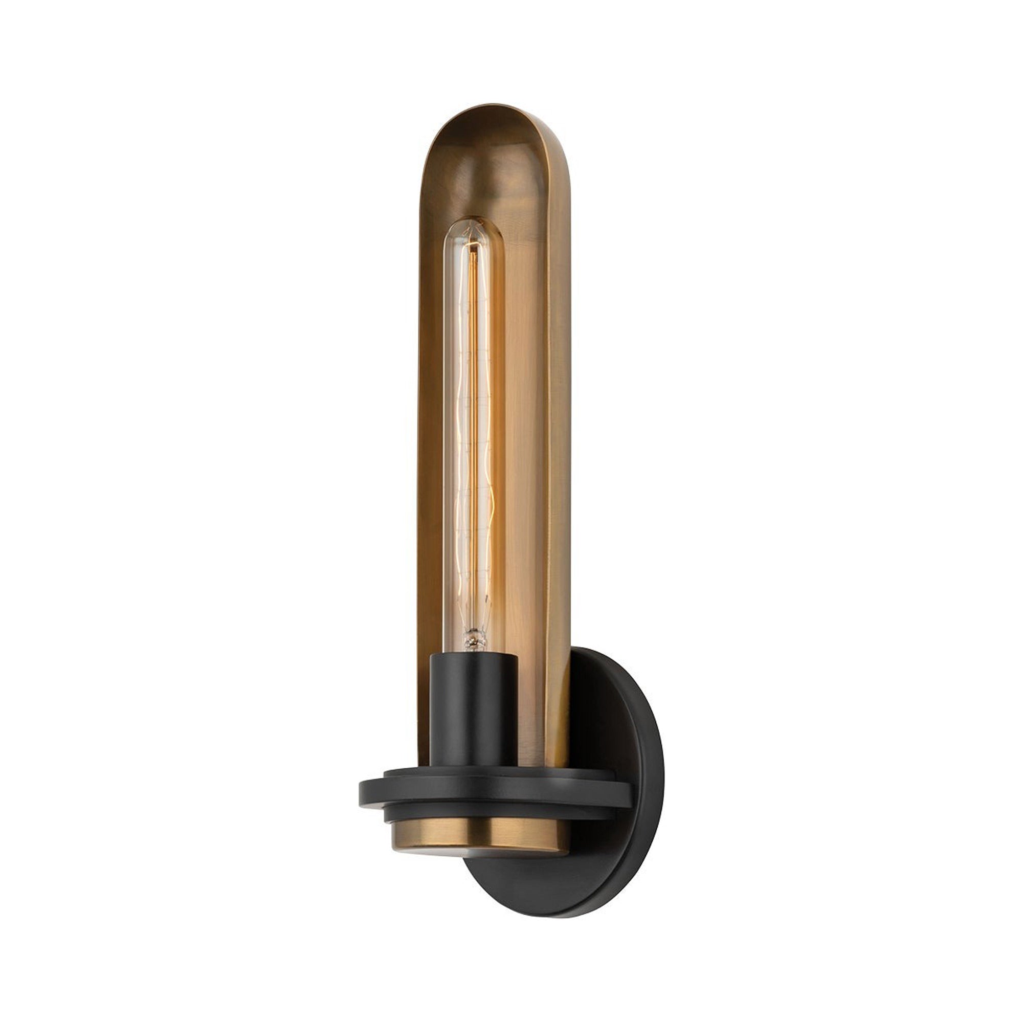 Taking its cues from early theatrical lights, the Tuscon Wall Light from Troy Lighting is a spectacular addition that radiates warmth and sophistication. A patina brass finish is deep and rich, while soft black finish accent lend smoky elegance in your foyer or living room.