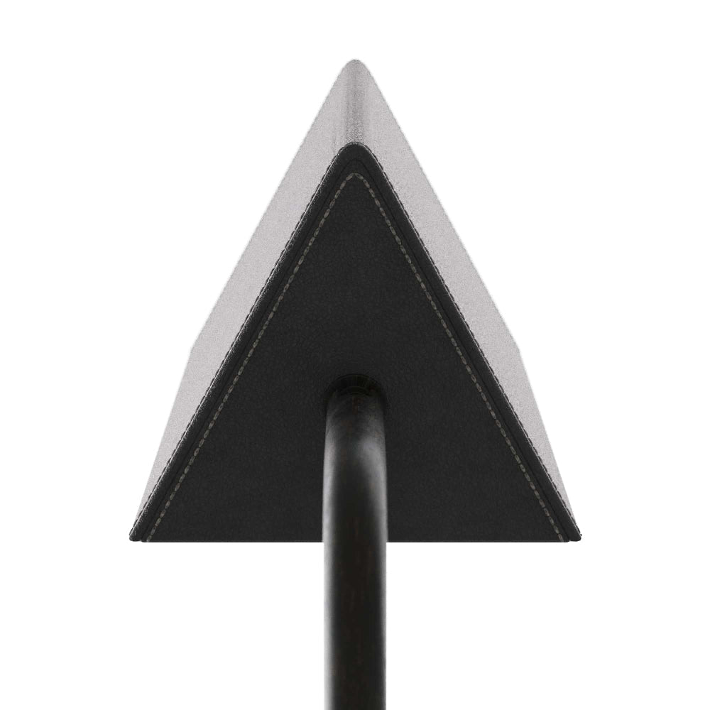 Textural elegance tackles a retro and vintage vibe as the Tyson Table Lamp from Arteriors repurposes the iconic pharmacy-style lamp of yesteryear. Strict linear and geometric flavor shapes a functional pivoting triangular shade and square base, with white leather wrapping and white lacquer lining producing extraordinary illumination. With piped metal framing mixed in, this table lamp reflects a glam perspective of minimalism.