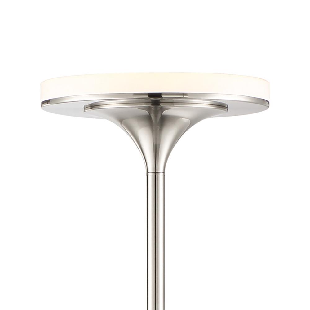 A sleek, flat light with a white acrylic ring diffuser tops this ultra-modern U.H.O. LED Floor Lamps from George Kovacs
