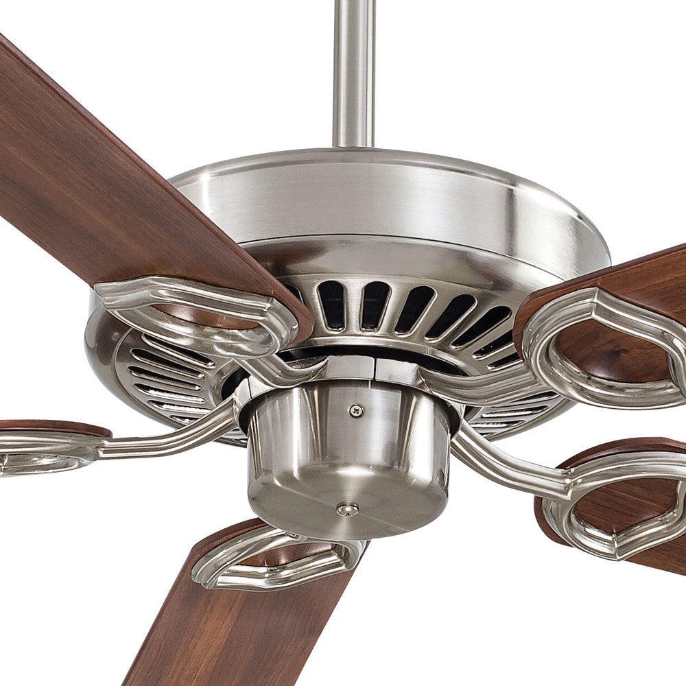 Dabble in tradition with a charming rustic vibe as the Ultra-Max Ceiling Fan from Minka Aire becomes a décor staple with ultimate functionality. A simply styled metal motor housing and down rod adds a soft touch to a fan with five oar-shaped blades that reverse to adapt to climate conditions. Easy remote-operated controls and a fresh artisan motif adds a boost to traditional and transitional spaces.