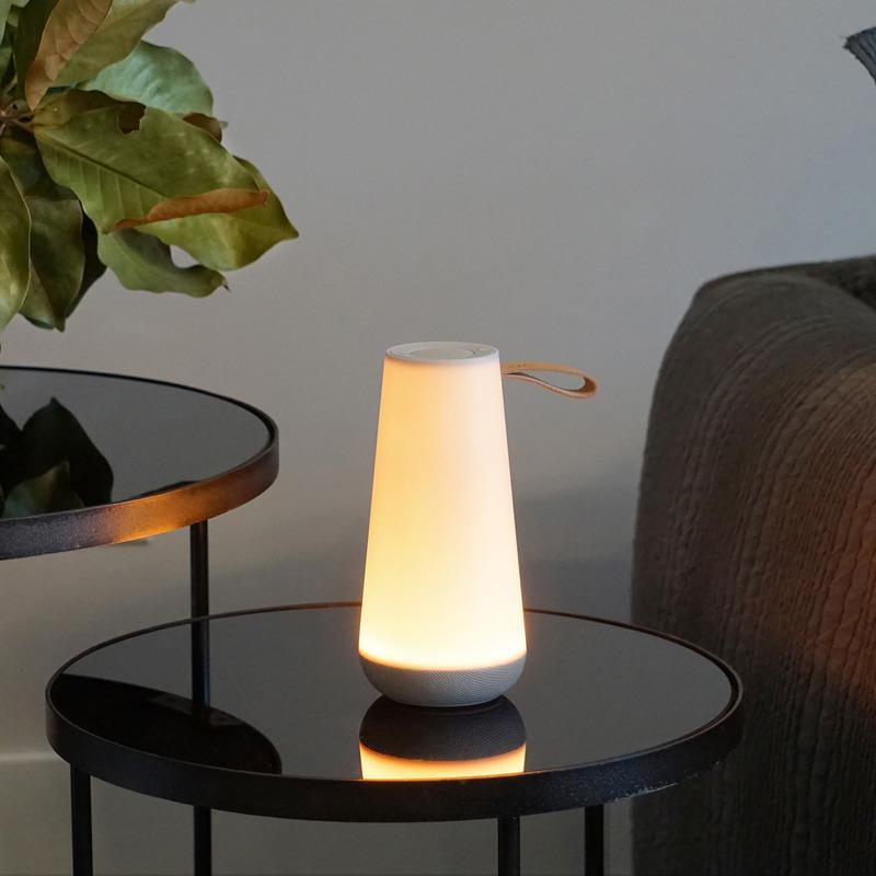 Adventure outdoors or in with the chic UMA LED Mini Sound Lantern from Pablo, embracing a love of nature with tech convenience. Its sleek tapered cone silhouette mimics a traditional lantern, as a Bluetooth-enabled feature serves as a stereo unit with touch-sensitive volume control and 360-degree surround sound capabilities from a mobile device. Enjoy the warmth of a glowing lantern emitting state-of-the-art LED lighting technology.