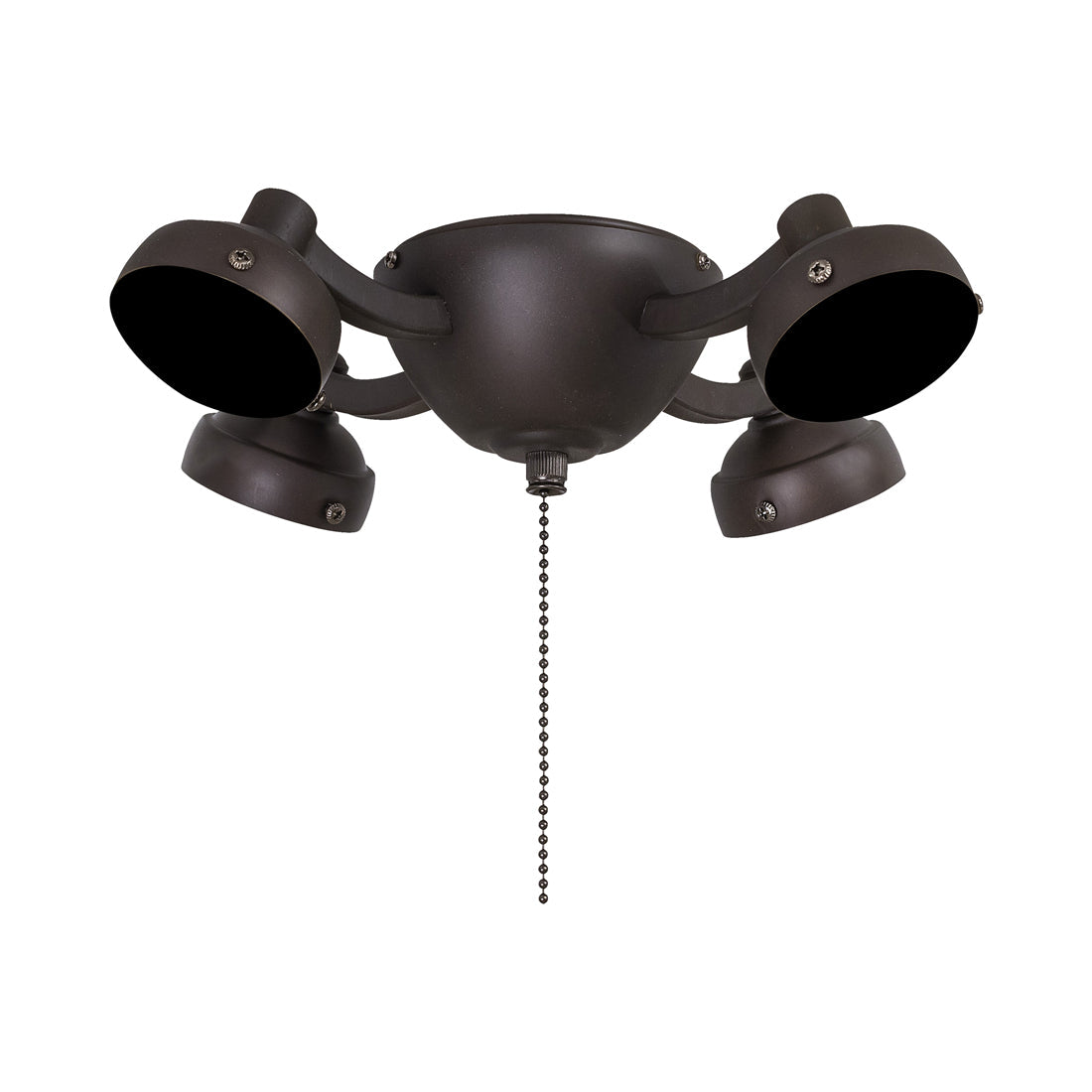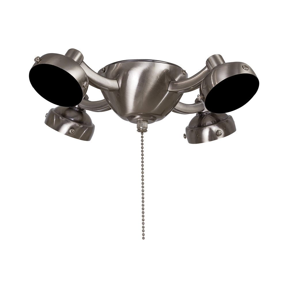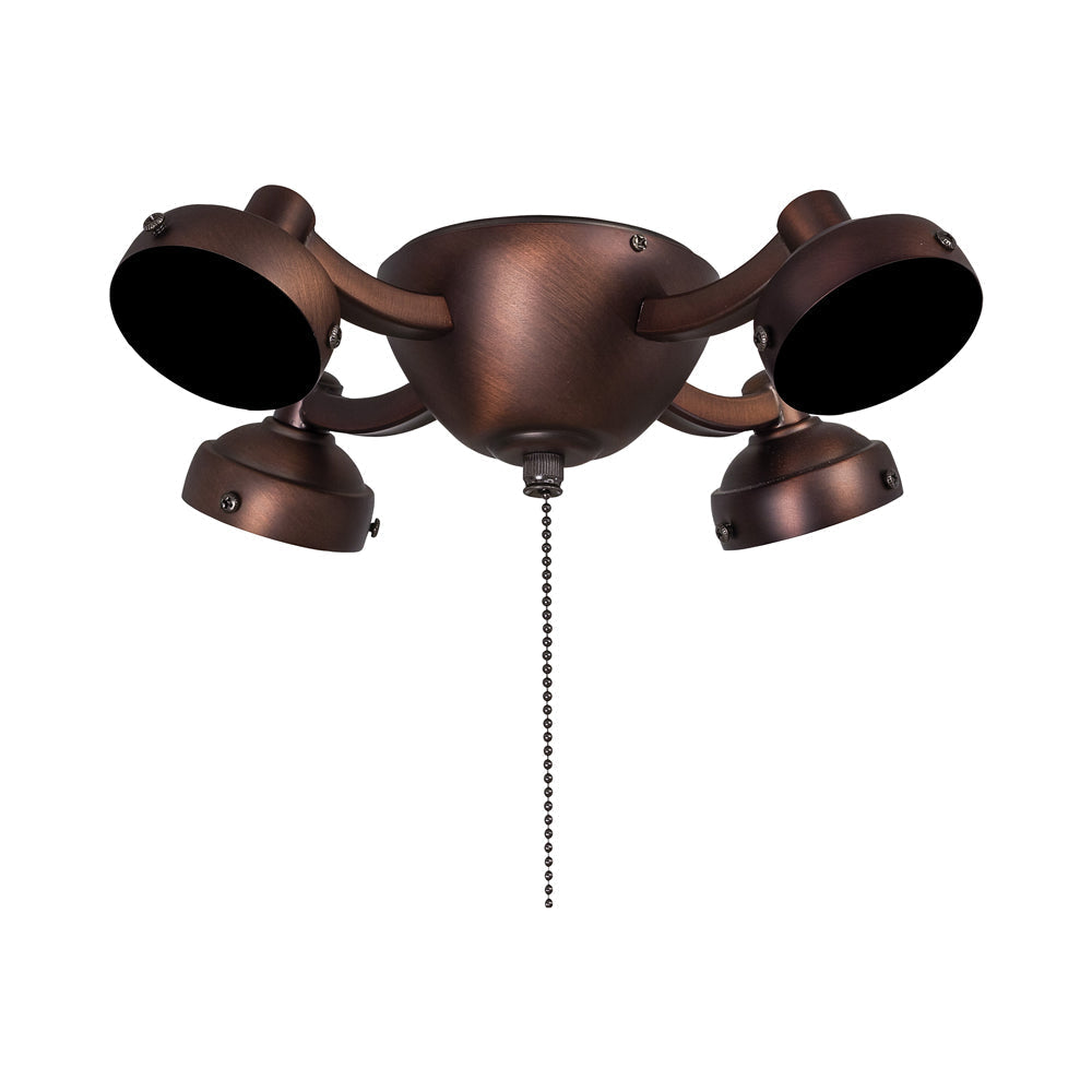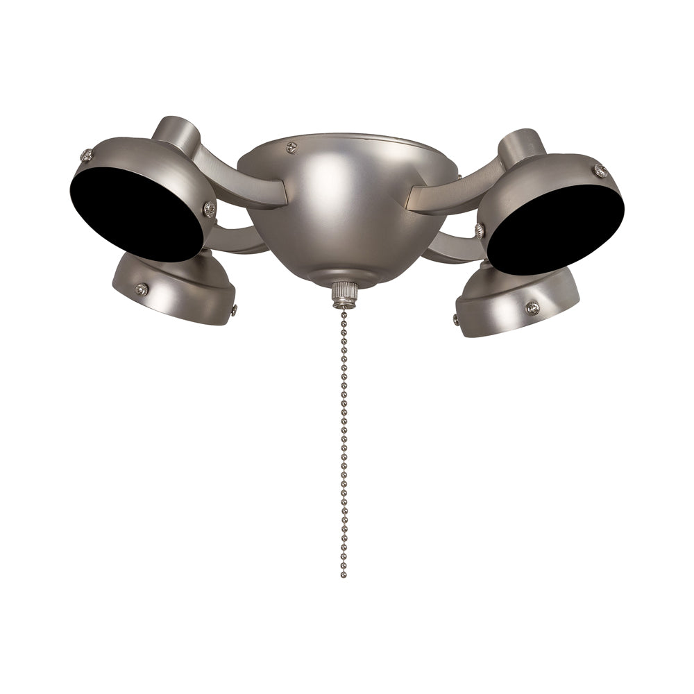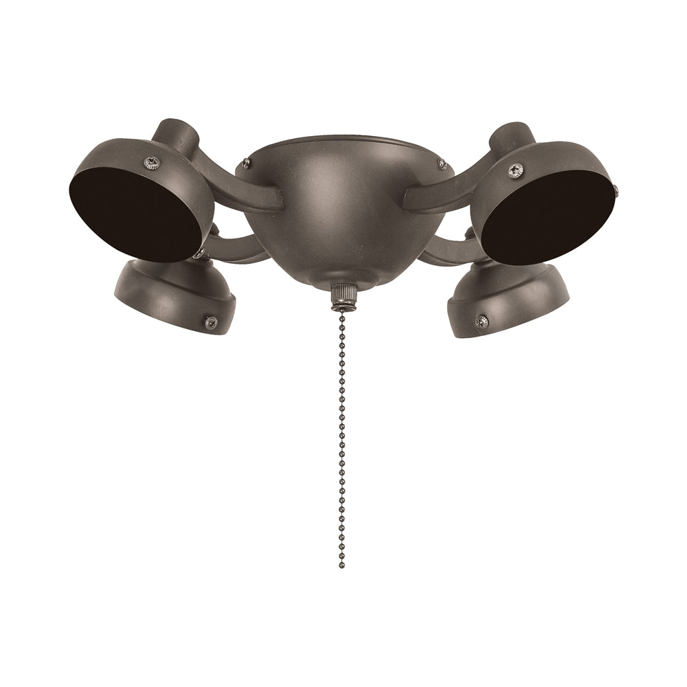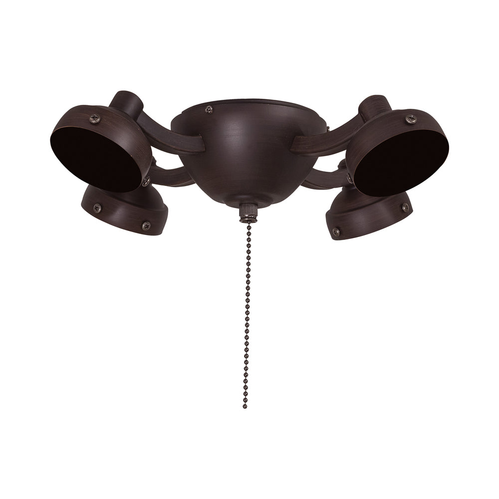 Dress up a ceiling fan with an embellishment offering old world drama. The Universal K34L Fan Light Kit from Minka Aire creates gallery elegance with rustic elements including four textured metal shade holders mounted to a simple yet stylish bowl-shaped canopy.