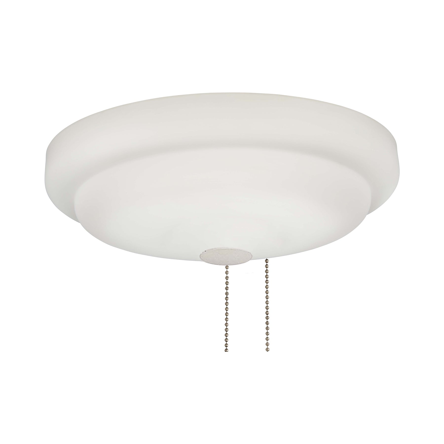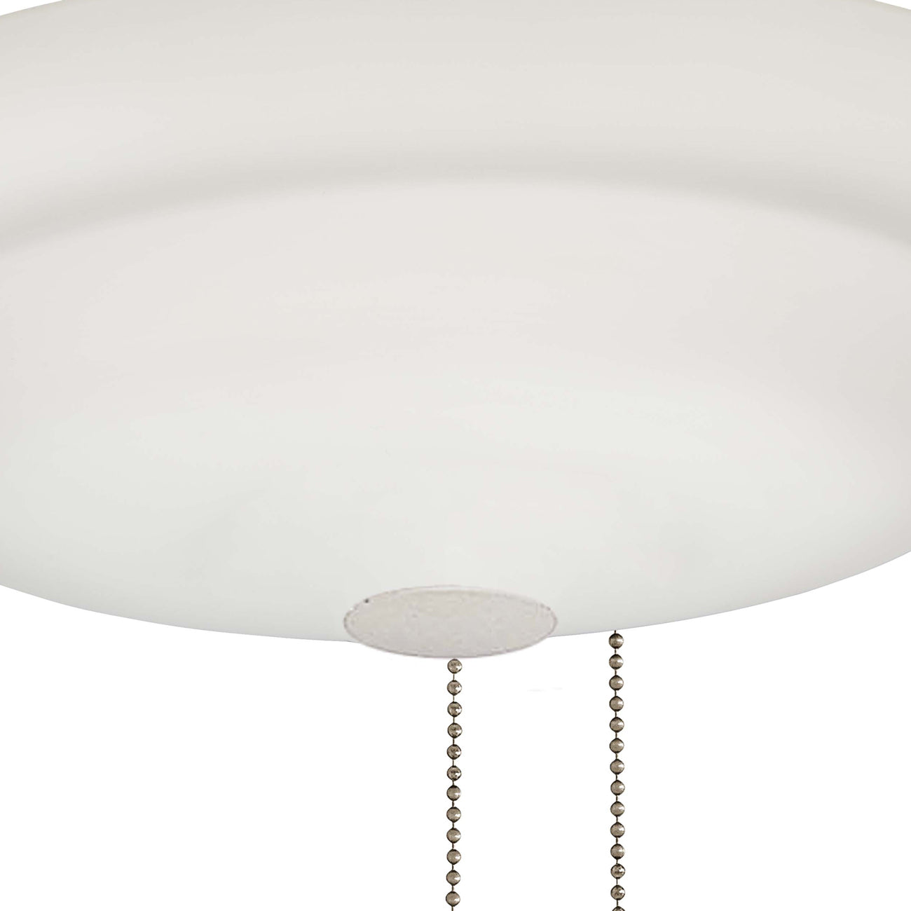 A minimalist design and low profile is nonetheless elegant as it expands functionality and style in an existing ceiling fan. The Universal K9110L LED Fan Light Kit from Minka Aire preserves the classic elegance of simplicity with a slender dome shade made of gorgeous etched white glass. A thin white finish metal cap accent and pull chain jive with a low-key aesthetic offering energy-efficient illumination.
