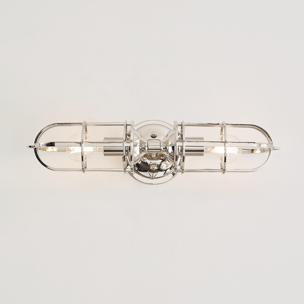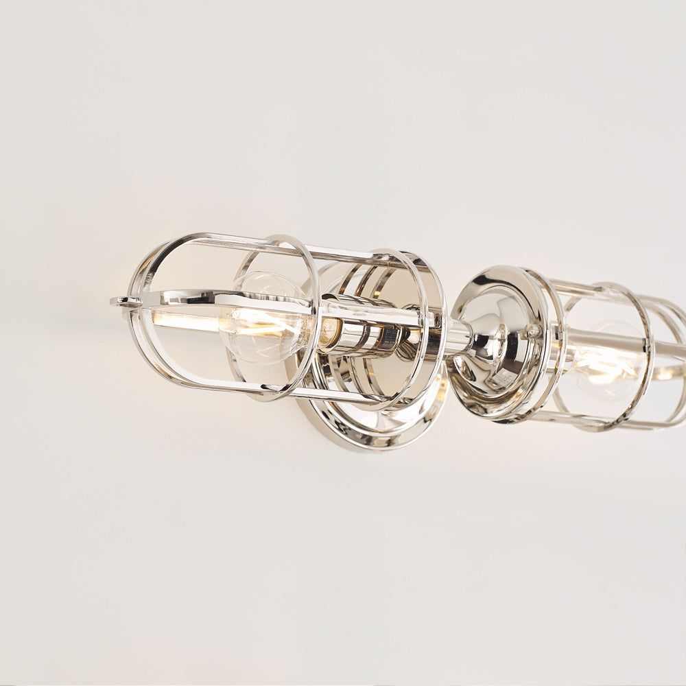 Inspired by classic warehouse design, the Urban Renewal Bath Vanity Light from Generation Lighting adds a classic finish to a bold caged shade.