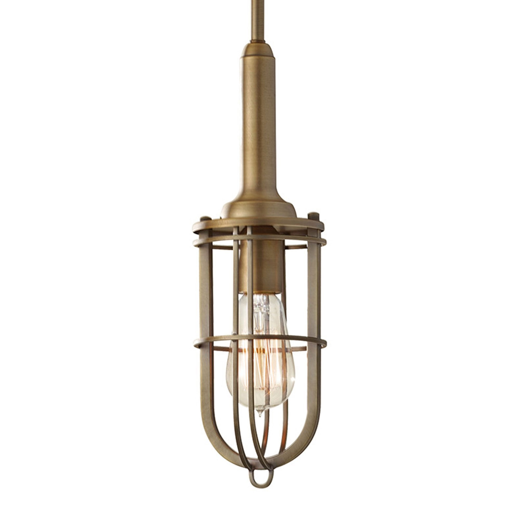 Turning function to impressive style, the Urban Renewal Closed Cage Pendant Light from Generation Lighting is surrounded with a metal cage.
