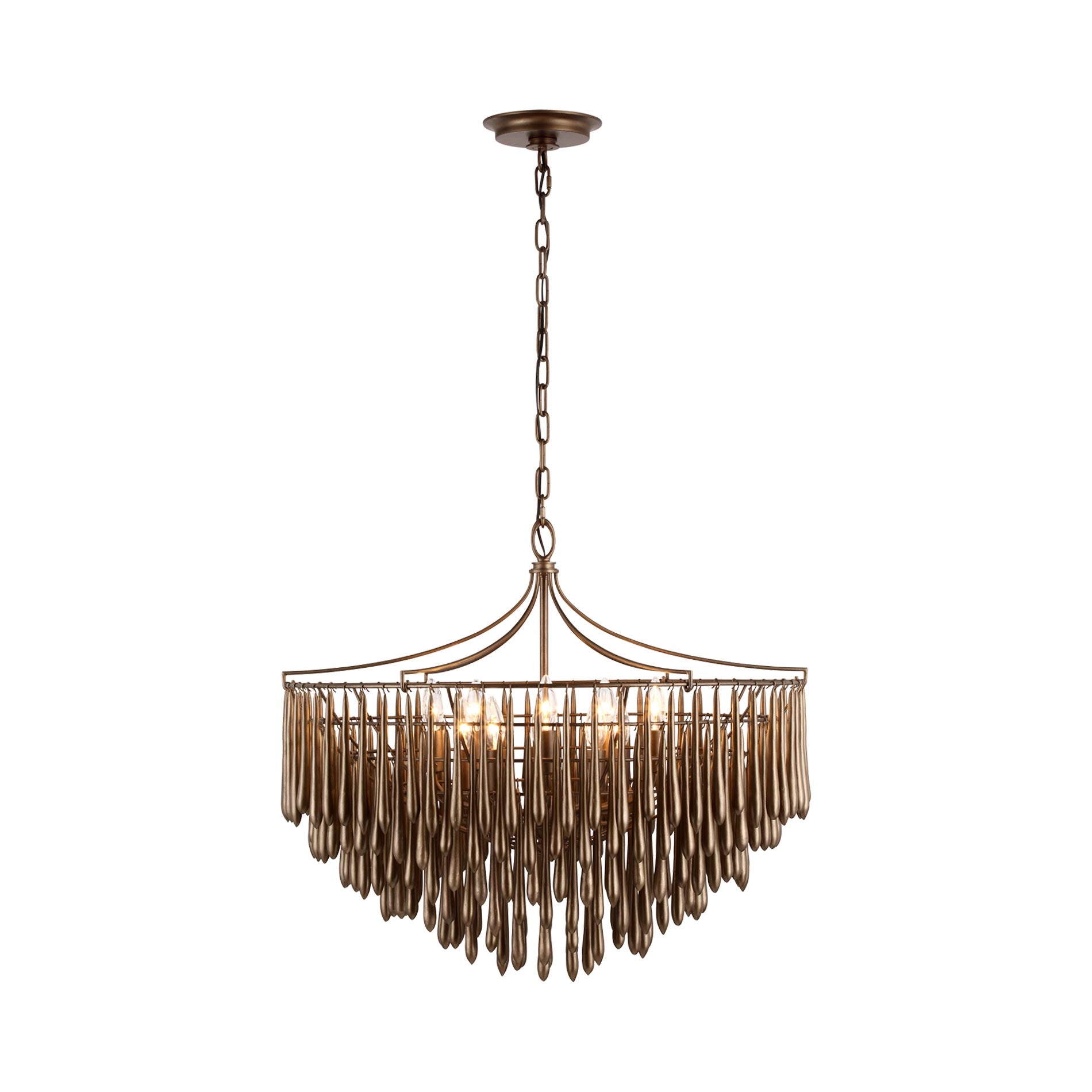 Make the most of design artistry and a bohemian vibe with the Vacarro Chandelier from Visual Comfort Signature. This fixture offers an exotic design with dangling metal pieces in graduated tiers that form a shapely silhouette. Perfect for highlighting a custom dining space or entryway, this energy-efficient LED chandelier is an unforgettable example of powerful design accenting.