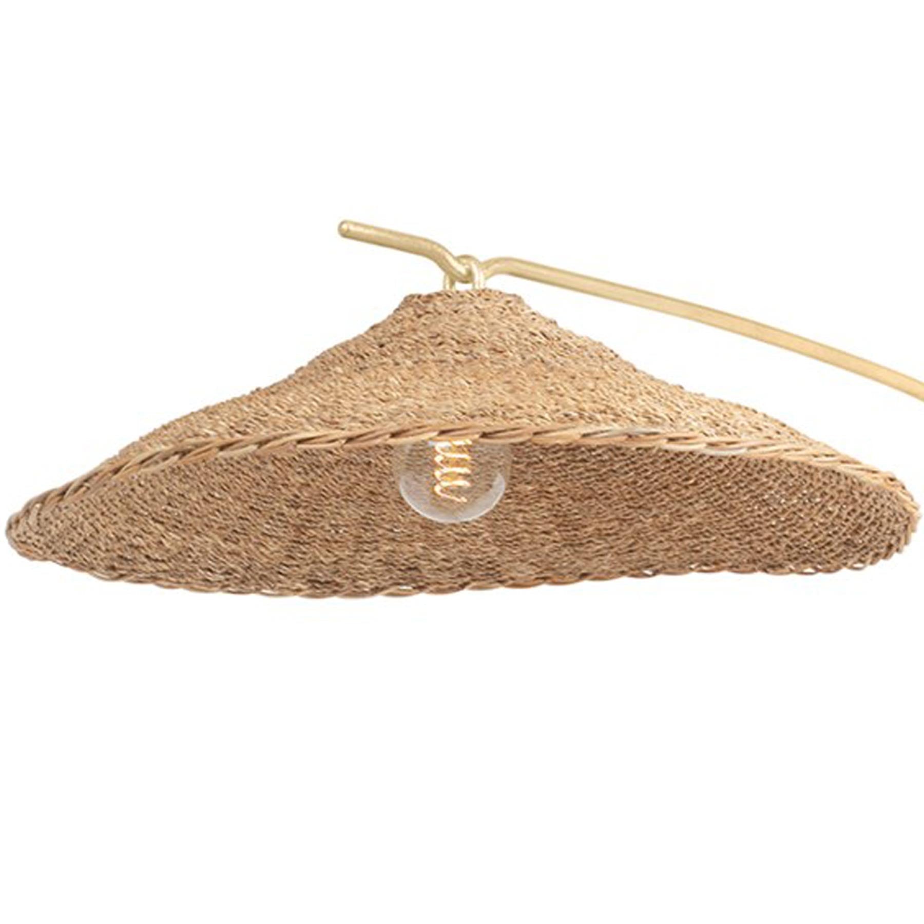 Glam takes a page from island style to produce an exceptional light source that transforms custom spaces. The Valier Plug-In Wall Light from Troy Lighting walks the line between charming and lustrous, infusing island and coastal personality with an imperfectly shaped dome shade fashioned of natural finish Lampakanay grass. Marked curvature of a slender gleaming vintage gold leaf finish frame joins matching accent elements to impart texture, minimalism, and a relaxing motif.